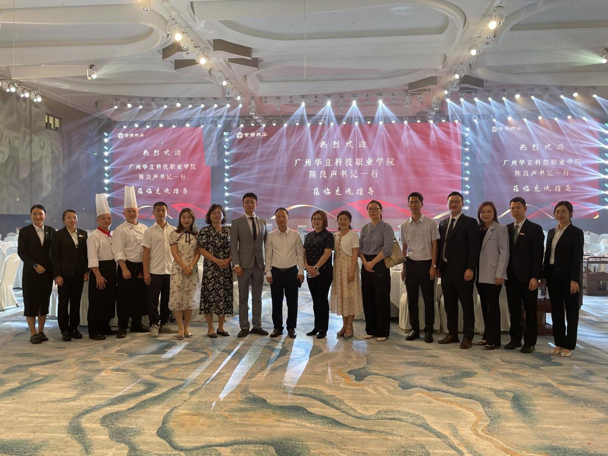 走訪中,陳良聲書記一行在公司總裁林勝軒等企業(yè)高管的陪同下詳細(xì)了解了企業(yè)的發(fā)展歷程、企業(yè)文化及公司經(jīng)營(yíng)情況,金塘勝宴餐飲集團(tuán)是一家三十余年高端的一站式婚宴餐飲企業(yè),旗下品牌有多家餐飲、海鮮樓、婚禮藝術(shù)中心、新零售中心等,是廣東省較大的綜合性粵菜餐飲集團(tuán),可為學(xué)生提供眾多的實(shí)習(xí)和就業(yè)崗位。集團(tuán)擁有健全的內(nèi)部人才培養(yǎng)體系及晉升體系,為學(xué)生的職業(yè)生涯發(fā)展提供廣闊的成長(zhǎng)空間。