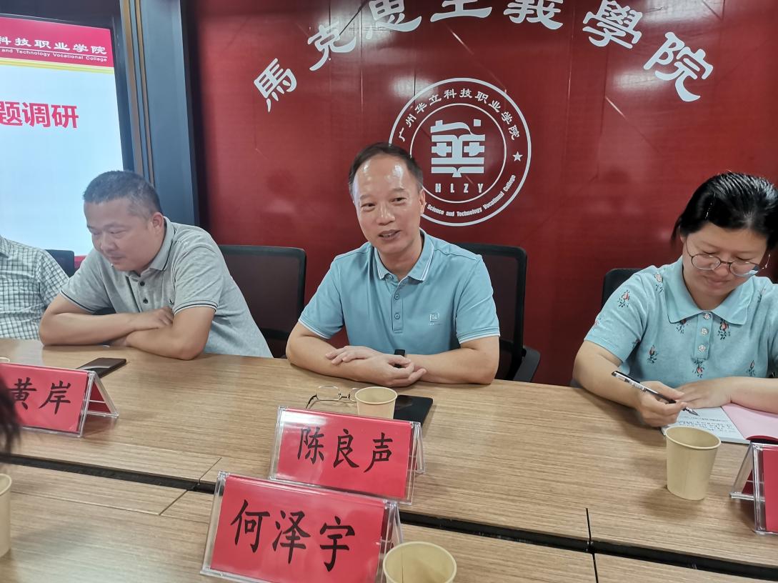 6月25日下午,廣州市增城區(qū)委黨校中青年干部培訓(xùn)班學(xué)員來(lái)我校馬克思主義學(xué)院開展“甘泉文化‘雙創(chuàng)’路徑研究”調(diào)研活動(dòng)。學(xué)校黨委書記陳良聲、黨委委員黨辦主任劉宇赤、督導(dǎo)室主任唐輝、馬克思主義學(xué)院院長(zhǎng)廖良初和部分思政課教師參加。調(diào)研座談會(huì)由黨辦主任劉宇赤主持。