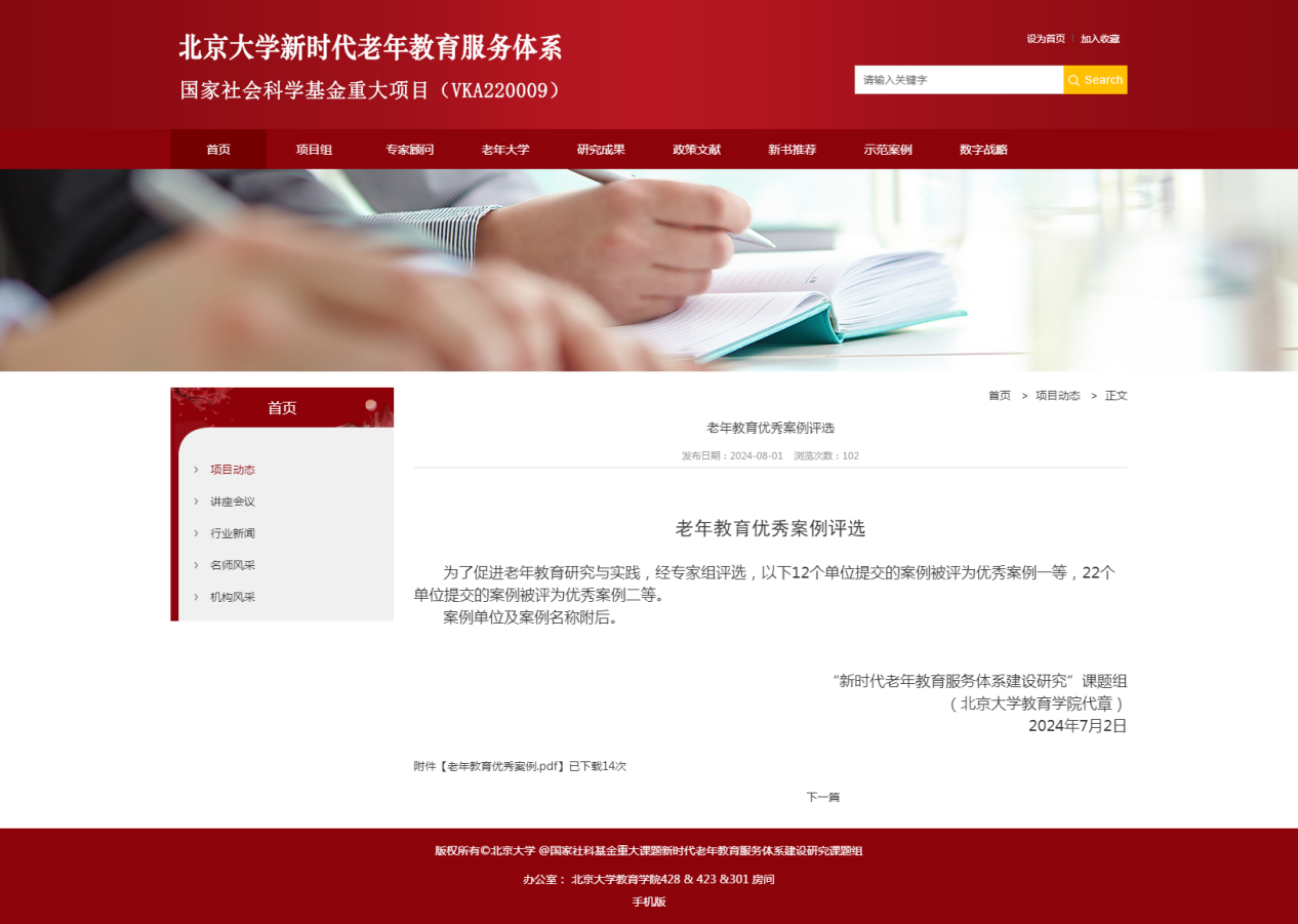 陶澤邦老師從再就業(yè)培訓與老年人力資源開發(fā)問題深入研究,得到國家社會科學基金重大項目《新時代老年教育服務體系建設研究》(編號:VKA220009)和北京大學教育學院的資助,在我??蒲刑幒徒?jīng)管學院的鼎力支持下,經(jīng)過多番打磨和修改,順利結題。經(jīng)過國家社會科學基金重大項目專家組的嚴格評審,最終獲評優(yōu)秀案例二等獎。