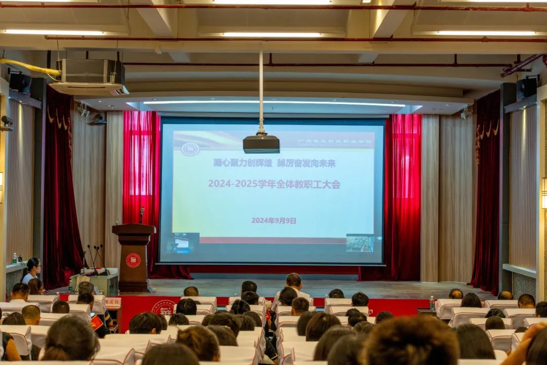 9月9日下午,廣州華立科技職業(yè)學(xué)院在廣州校區(qū)圖書(shū)館8樓報(bào)告廳召開(kāi)2024-2025學(xué)年全體教職工大會(huì),云浮校區(qū)以視頻連線同步進(jìn)行。全體校領(lǐng)導(dǎo),中層干部和兩校區(qū)教職工參加,大會(huì)由常務(wù)副校長(zhǎng)馬俊主持。