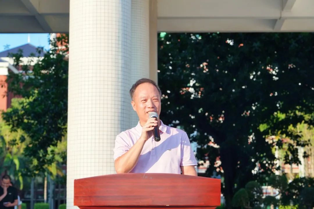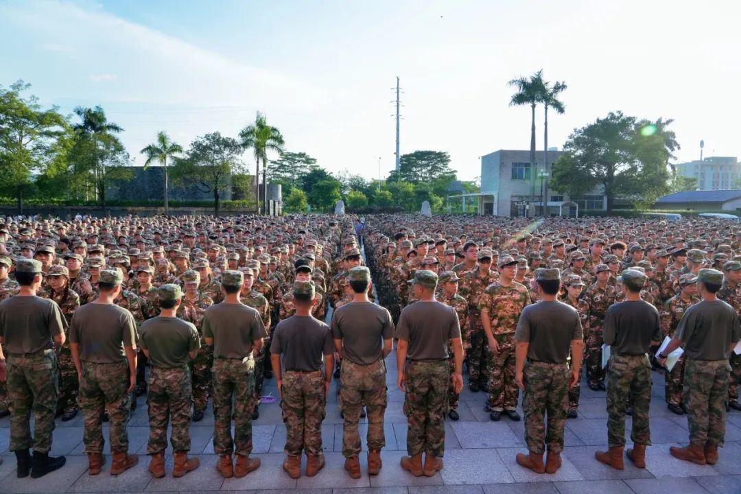 “今天是軍訓(xùn)的第一天,恰逢中秋佳節(jié),我代表學(xué)校祝大家中秋快樂!同時,也希望全體教官從嚴(yán)治教,科學(xué)施訓(xùn),揚軍威、樹軍魂。希望全體新生嚴(yán)以律己,積極參訓(xùn),強體魄、練本領(lǐng)?!标惲悸晻浬钋榧恼Z現(xiàn)場所有“戎裝”的2024級新生們。