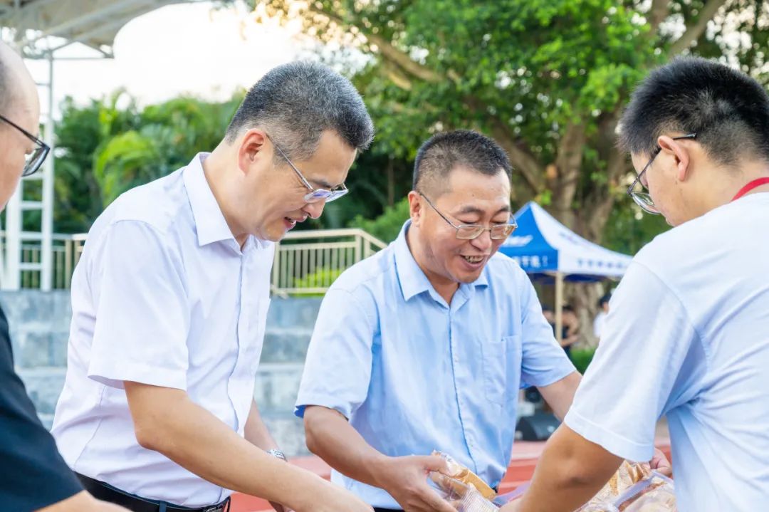 師長送暖,餅甜心頭。9月17日,廣州華立科技職業(yè)學(xué)院在廣州校區(qū)和云浮校區(qū)分別舉行2024級新生月餅發(fā)放活動。學(xué)校黨委書記陳良聲、常務(wù)副校長馬俊,副校長高堯來、王洪艷,校長助理葉春桃、張劍鋒到現(xiàn)場為2024級小新生們發(fā)放定制月餅,并與新生們親切交談,為同學(xué)們送上節(jié)日的問候和祝福。