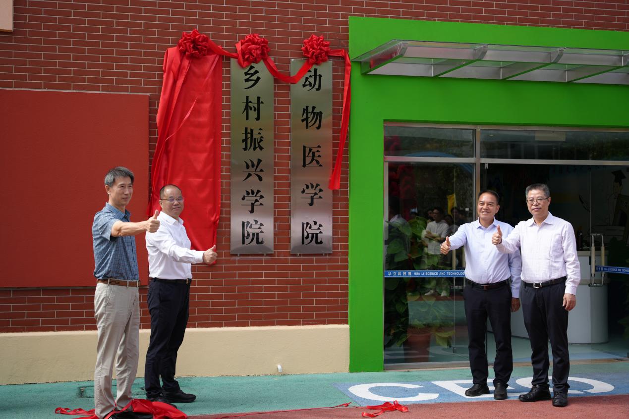 11點整,增城區(qū)委常委王長春等嘉賓與陳良聲書記及學校領導共同為鄉(xiāng)村振興學院、動物醫(yī)學院和創(chuàng)新創(chuàng)業(yè)學院舉行盛大的揭牌儀式。這一莊嚴時刻,標志著各學院正式翻開嶄新篇章。