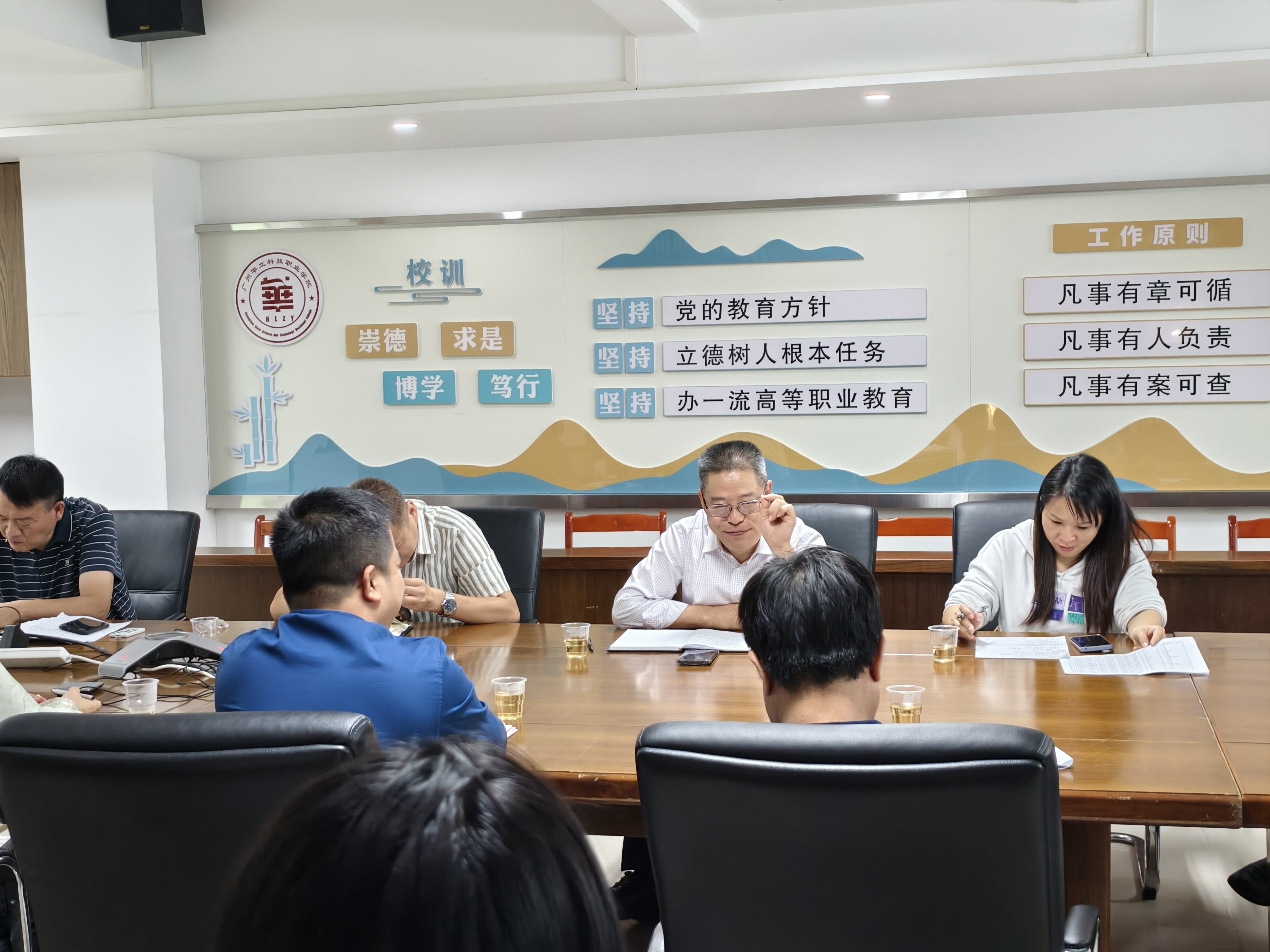 會上,副處長伍思立首先對廣州校區(qū)過來交流的各位領(lǐng)導(dǎo)表示熱烈的歡迎,隨后簡單介紹了一下云浮校區(qū)教務(wù)處近期的工作內(nèi)容與接下來的工作計劃,包括教材征訂、教學(xué)檢查、課程安排、課程考試、技能競賽、考務(wù)考證等幾個方面。