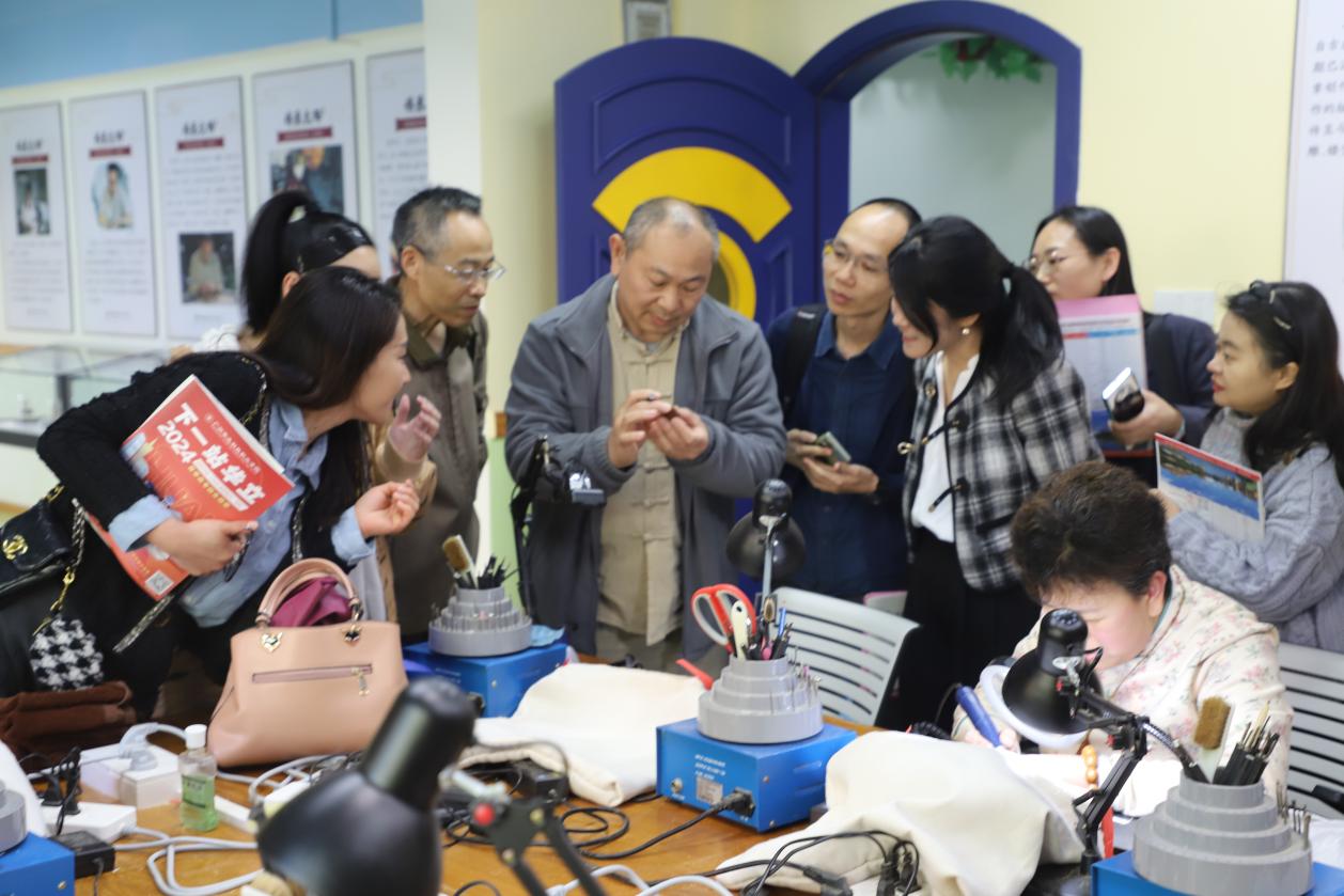 “廣現(xiàn)職院”方面對(duì)我校非遺傳承工作在課程建設(shè)、工作室建設(shè)、隊(duì)伍建設(shè)、社團(tuán)建設(shè)、科學(xué)研究和輻射帶動(dòng)等方面的做法表示贊賞,雙方就如何進(jìn)一步以學(xué)校的優(yōu)質(zhì)教育資源普惠社會(huì),深入開(kāi)展“非遺進(jìn)校園”“非遺進(jìn)社區(qū)”“文化幫扶”“推普助力鄉(xiāng)村振興”等話題展開(kāi)充分的交流。并希望通過(guò)舉辦交流活動(dòng),攜手共進(jìn),共同為推普和中華優(yōu)秀傳統(tǒng)文化傳承工作貢獻(xiàn)職教力量。