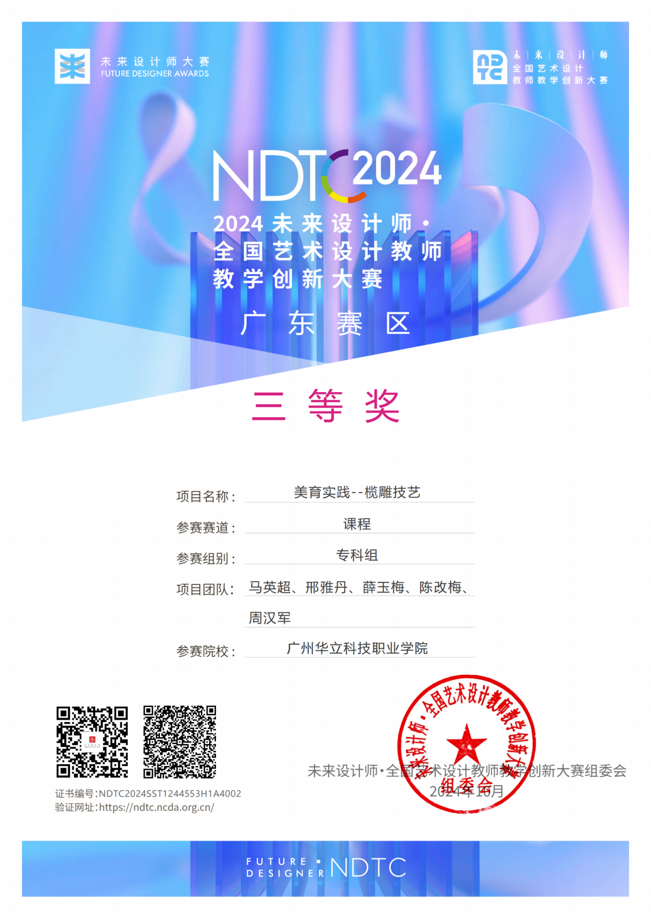近日,2024未來設(shè)計(jì)師·全國(guó)藝術(shù)設(shè)計(jì)教師教學(xué)創(chuàng)新大賽(簡(jiǎn)稱“教創(chuàng)賽”)結(jié)果公布,我校教師團(tuán)隊(duì)表現(xiàn)出色。其中,課程賽道榮獲三等獎(jiǎng)3項(xiàng),案例賽道榮獲三等獎(jiǎng)1項(xiàng),學(xué)校榮獲優(yōu)秀組織獎(jiǎng),此份榮譽(yù)充分展示了學(xué)校在藝術(shù)設(shè)計(jì)教育領(lǐng)域的創(chuàng)新實(shí)力和優(yōu)秀成果。