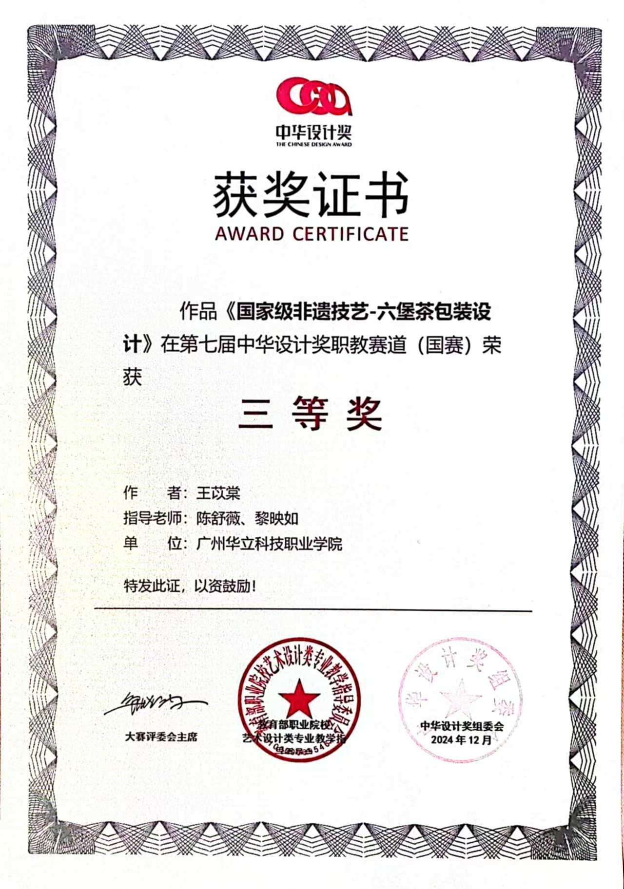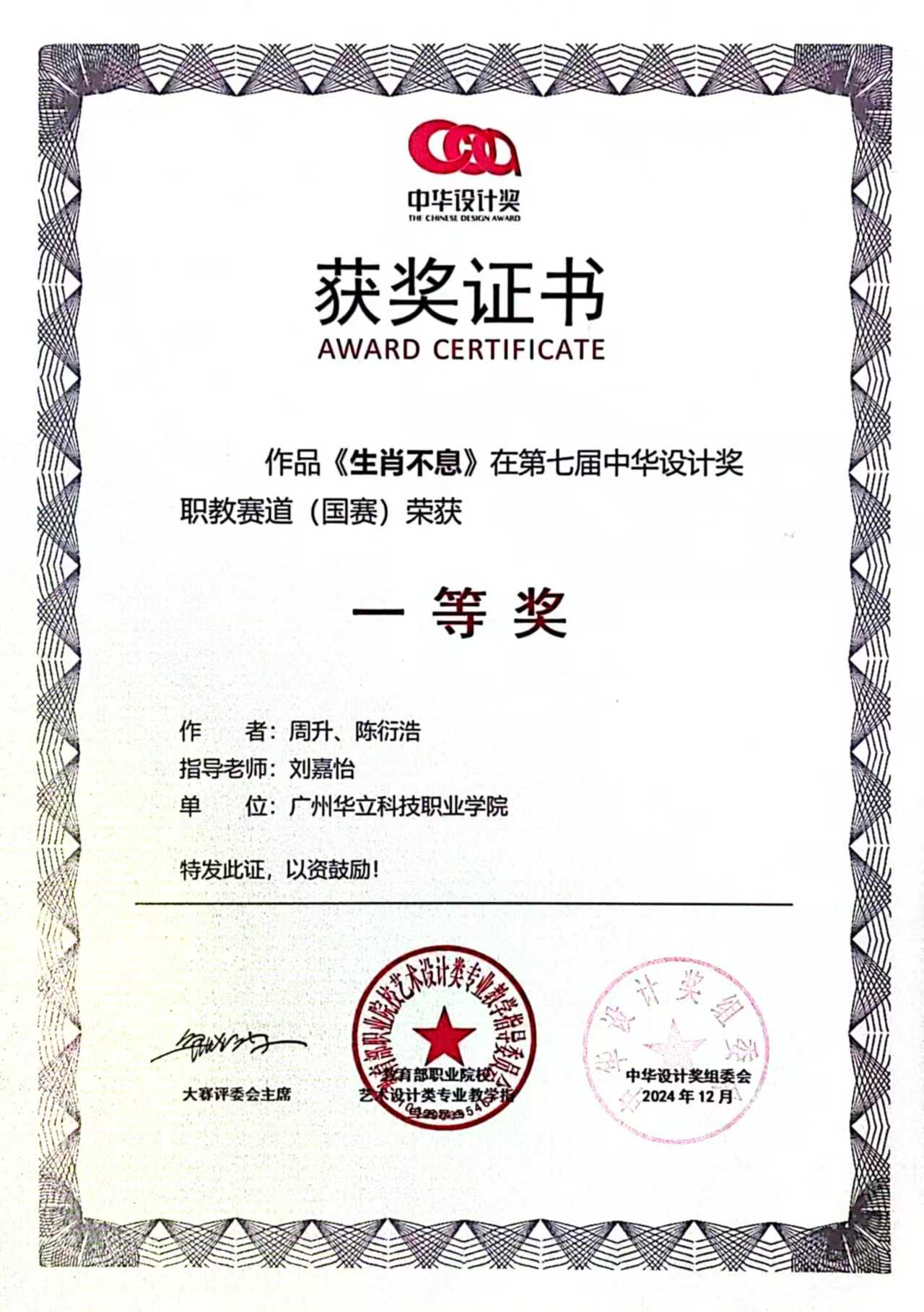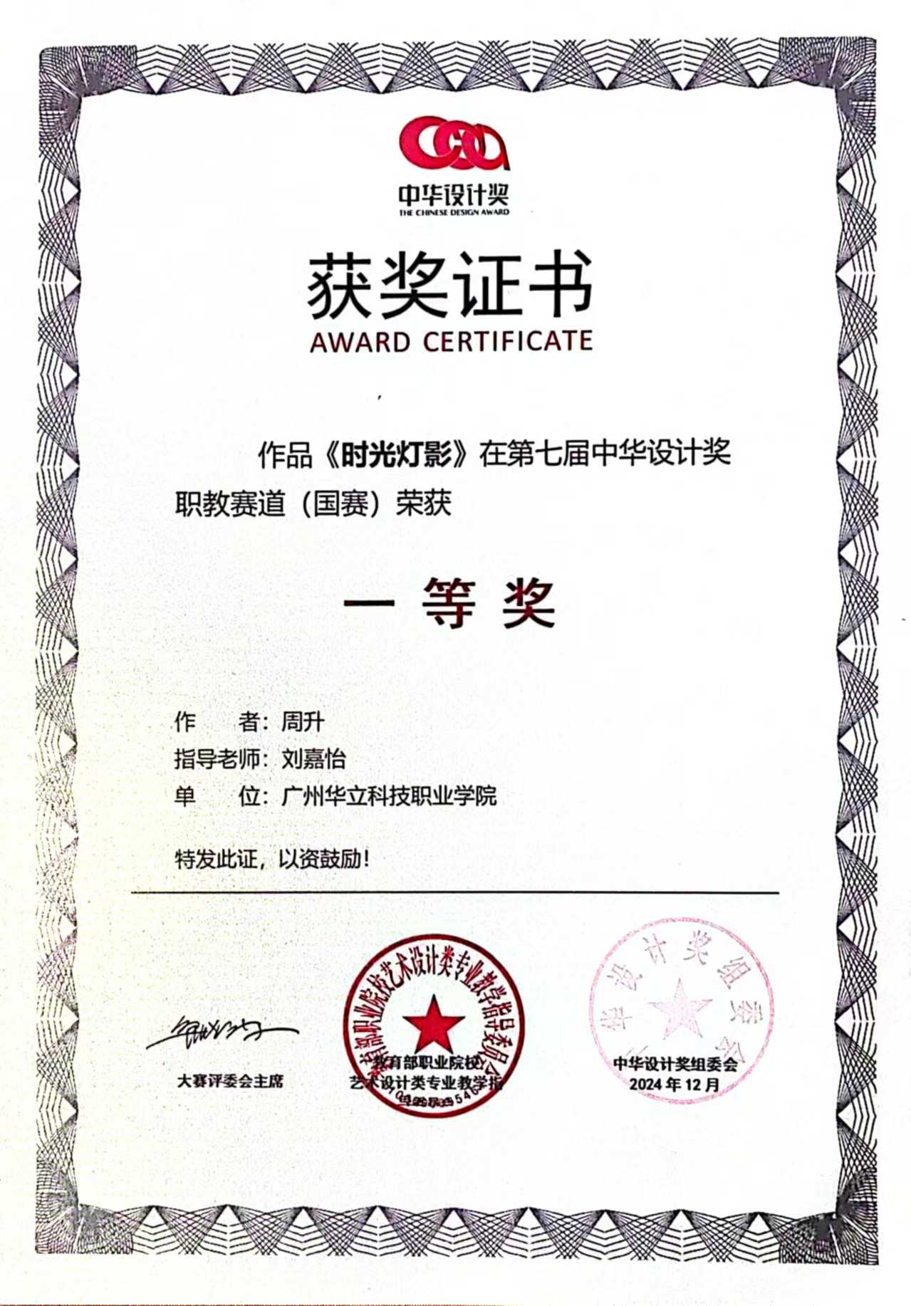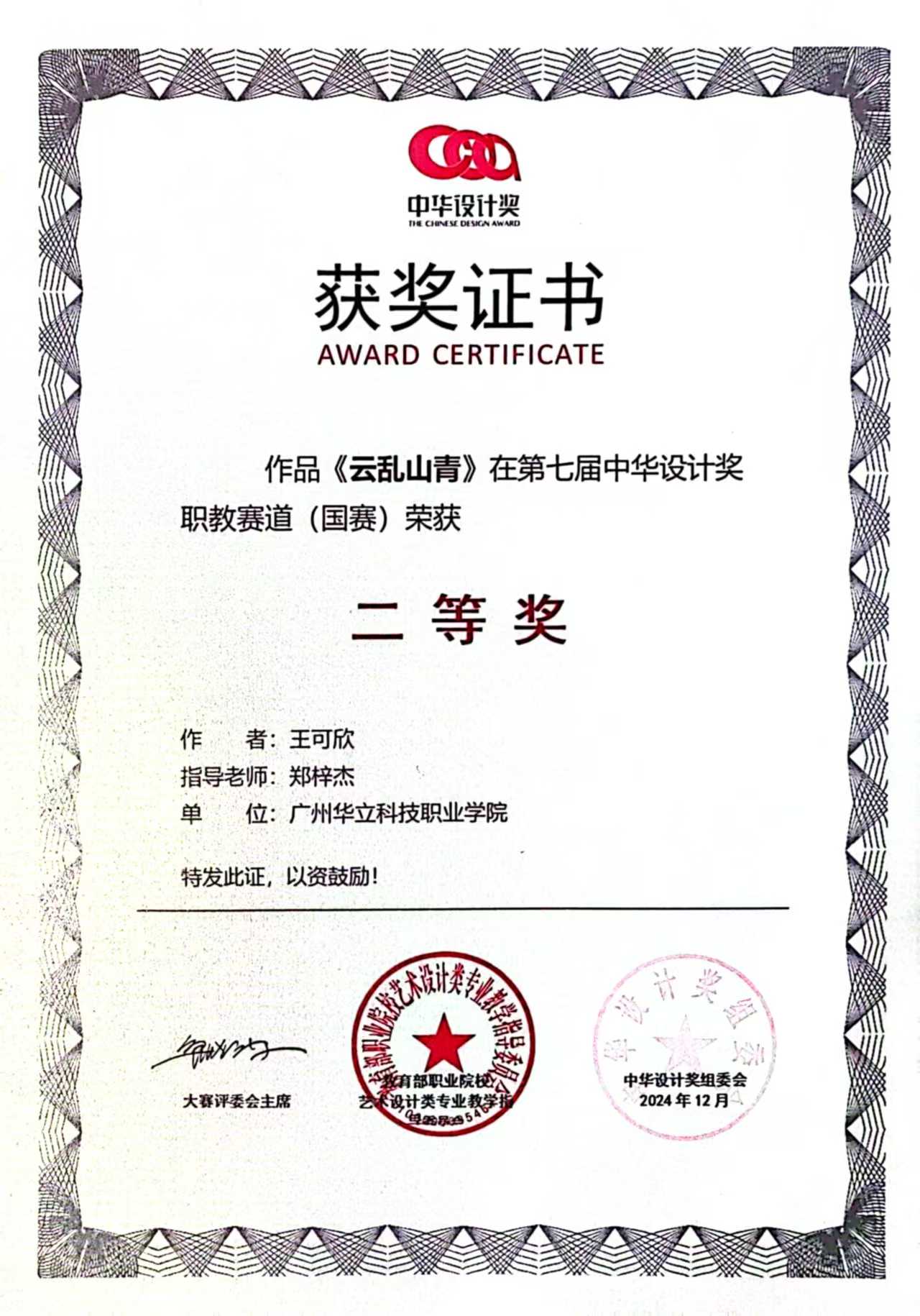 近日,由教育部職業(yè)院校藝術(shù)設(shè)計(jì)類專業(yè)教育指導(dǎo)委員會(huì)主辦的第七屆中華設(shè)計(jì)獎(jiǎng)職教賽道(國(guó)賽)圓滿落幕。經(jīng)過(guò)校賽、省賽、國(guó)賽激烈角逐,華立職院藝術(shù)與傳媒學(xué)院在此次大賽中脫穎而出,取得了令人矚目的優(yōu)異成績(jī)。其中在本屆中華設(shè)計(jì)獎(jiǎng)職教賽道(國(guó)賽)中斬獲一等獎(jiǎng)2項(xiàng)、二等獎(jiǎng)2項(xiàng)、三等獎(jiǎng)3項(xiàng)。此次獲獎(jiǎng),彰顯了我院在設(shè)計(jì)專業(yè)領(lǐng)域的高品質(zhì)教學(xué)水平和實(shí)踐教學(xué)成果,進(jìn)一步深化了產(chǎn)教融合成果轉(zhuǎn)化的綜合育人成效。