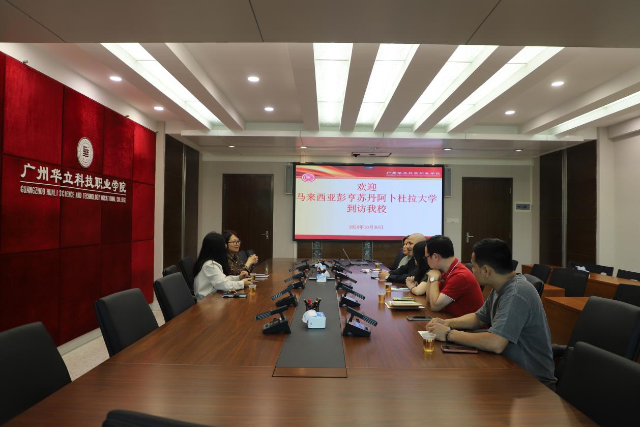 2024年10月30日,馬來(lái)西亞彭亨蘇丹阿卜杜拉大學(xué)(UMPSA)一行到訪我校,就將來(lái)可能開(kāi)展的英語(yǔ)語(yǔ)言中心項(xiàng)目、碩博學(xué)歷提升項(xiàng)目、雙院聯(lián)合培養(yǎng)項(xiàng)目等進(jìn)行洽談。廣州華立科技職業(yè)學(xué)院常務(wù)副校長(zhǎng)馬俊、人事處副處長(zhǎng)陳茜、國(guó)際交流中心副主任劉婕出席會(huì)議。
