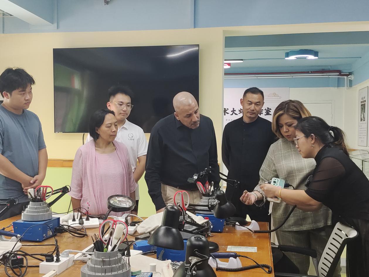 洽談會(huì)結(jié)束后,馬來(lái)西亞彭亨蘇丹阿卜杜拉大學(xué)(UMPSA)來(lái)訪嘉賓在人事處、國(guó)際交流中心的陪同下參觀校園,從非遺欖雕大師工作室、到中醫(yī)藥館,到人工智能館,再到全國(guó)普通話等級(jí)考場(chǎng),全面了解了我校在中國(guó)優(yōu)秀傳統(tǒng)文化方面的優(yōu)勢(shì),更加直接的了解到了我校的風(fēng)貌。