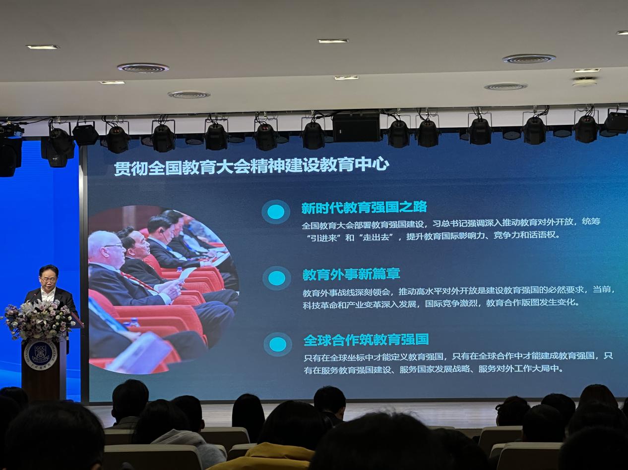 最后,廣東省教育廳交流合作處(港澳臺事務辦公室)李金俊處長對整個大會作總結(jié)并發(fā)表了“2024國際時政觀察、中美關(guān)系、教育對外開放與教育強國建設”專題報告,從新時代教育強國之路,外事教育新篇章,全球合作筑教育強國等方面總結(jié)式發(fā)言,并就教育外事工作中的困難與挑戰(zhàn)對在場的高校從業(yè)者做出了鼓勵與支持。