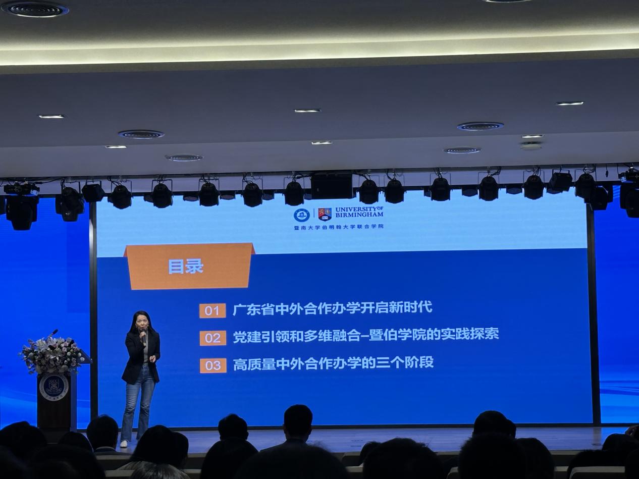接下來進入大會的四個專題講座環(huán)節(jié),暨南大學伯明翰大學聯(lián)合學院書記兼副院長李瓊就構(gòu)建融合互信的中外合作辦學命運共同體作了系統(tǒng)的闡述,以暨南大學和伯明翰大學在聯(lián)合辦學為例為所有高校提供了很好的思路。