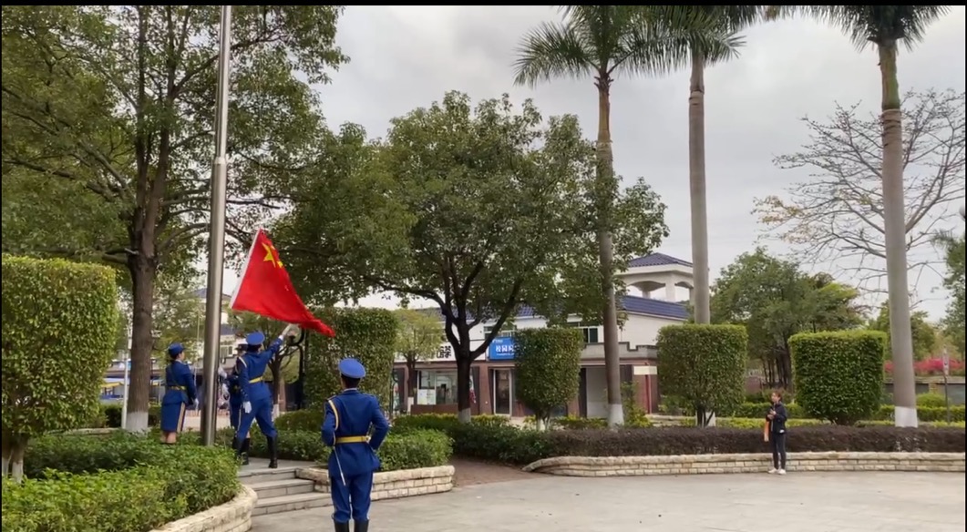 旗手們恰似挺拔的白楊,身姿筆挺,邁著整齊劃一、擲地有聲的正步,護(hù)送著五星紅旗走向升旗臺(tái)。