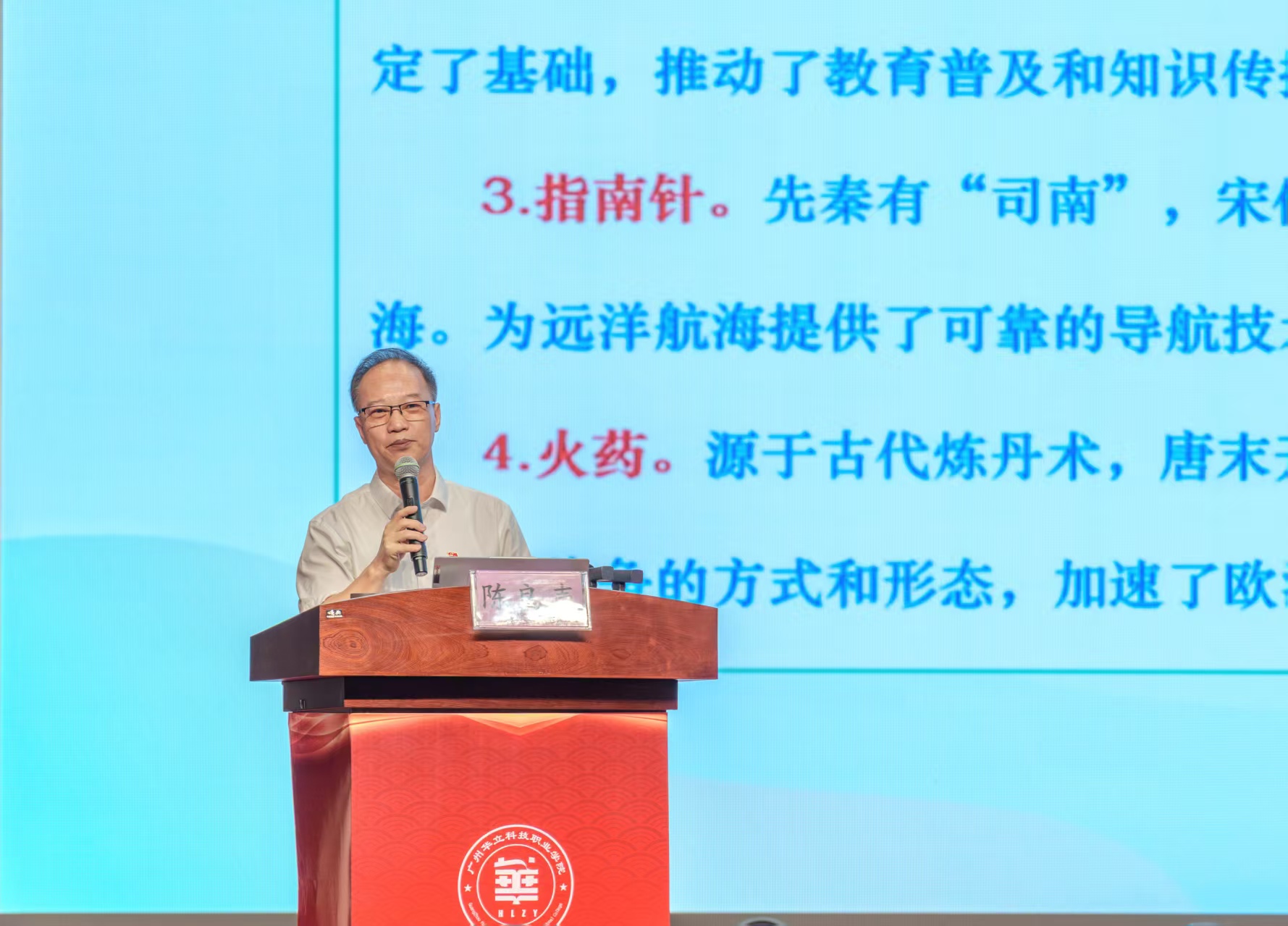 成就鼓舞人心,挑戰(zhàn)依然嚴(yán)峻。陳良聲通過“孟晚舟被困三年”事件警醒大家:科技強國之路并非一片坦途,外部施加的無理打壓從未停歇過。如今在實現(xiàn)高水平科技自立自強的新征程上,尤其需要傳承和弘揚以“天下興亡、匹夫有責(zé)的愛國情懷,視死如歸、寧死不屈的民族氣節(jié),不畏強暴、血戰(zhàn)到底的英雄氣概,百折不撓、堅忍不拔的必勝信念”為內(nèi)涵的偉大抗戰(zhàn)精神。高水平科技自立自強與偉大抗戰(zhàn)精神雖然誕生于不同時代,卻因共同的精神內(nèi)核而緊密相連,偉大抗戰(zhàn)精神與發(fā)展科技自立自強所需的意志品質(zhì)高度契合,這種以愛國情懷、民族氣節(jié)、英雄氣概和必勝信念為核心的抗戰(zhàn)精神,能為攻克科技難關(guān)提供強大的精神動力。陳良聲還借助我國隆重舉行紀(jì)念中國人民抗日戰(zhàn)爭暨世界反法西斯戰(zhàn)爭勝利80周年閱兵場上一幅幅震撼全球的新型武器裝備照片,展現(xiàn)了中國人民“銘記歷史、緬懷先烈、珍愛和平、開創(chuàng)未來”的堅定信心和決心。陳良聲的深刻論述和精彩展示,深深地感染了現(xiàn)場所有人。