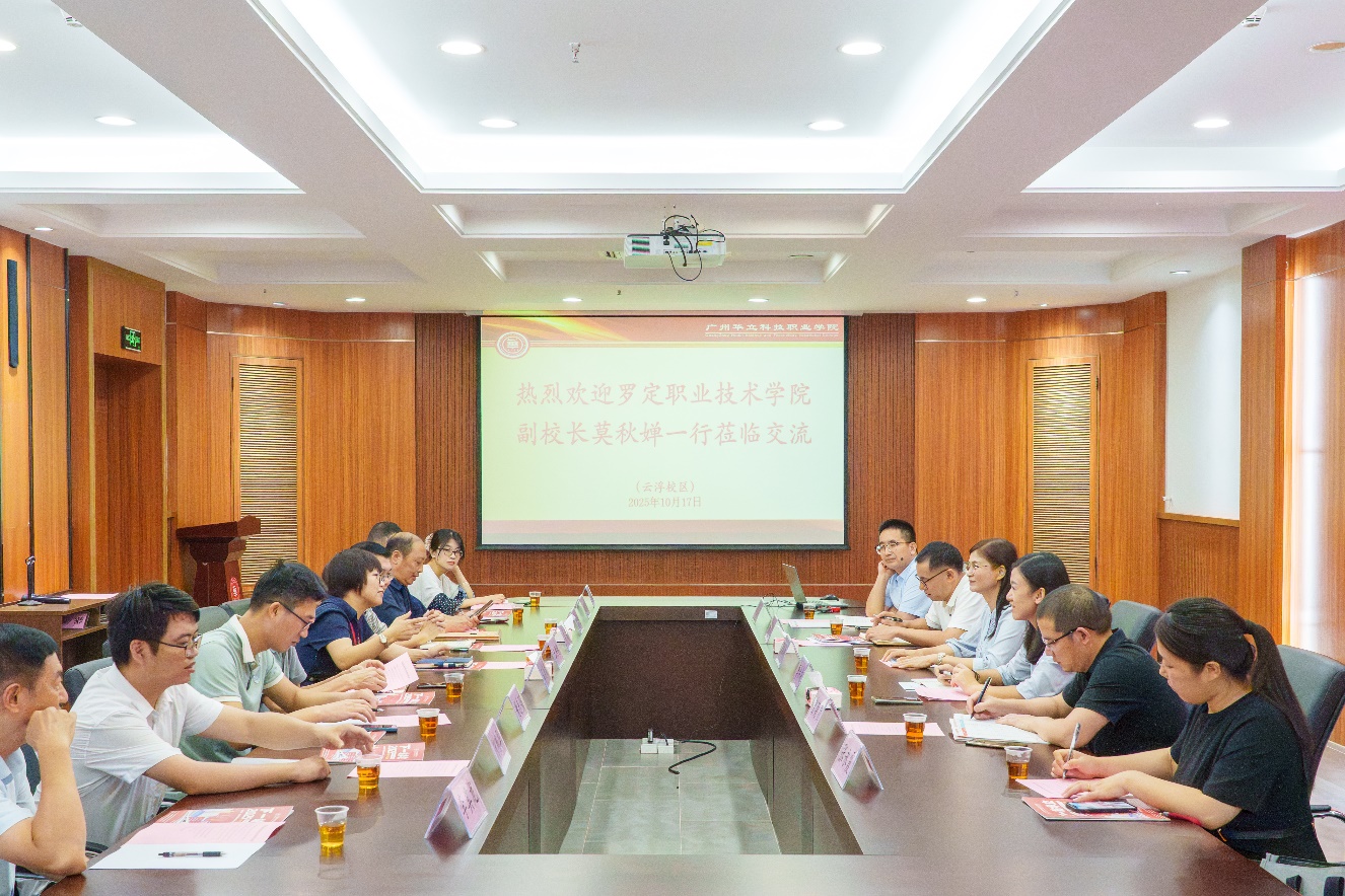 2025年10月17日,羅定職業(yè)技術(shù)學(xué)院黨委委員、副校長莫秋嬋教授率隊(duì),與教務(wù)科研部部長李洪梅副教授等一行六人來我校云浮校區(qū)參觀交流。我校黨委副書記、副校長王洪艷教授,教務(wù)處副處長李濤教授、實(shí)訓(xùn)中心主任石炎生教授及相關(guān)二級(jí)學(xué)院負(fù)責(zé)人熱情接待并全程陪同。