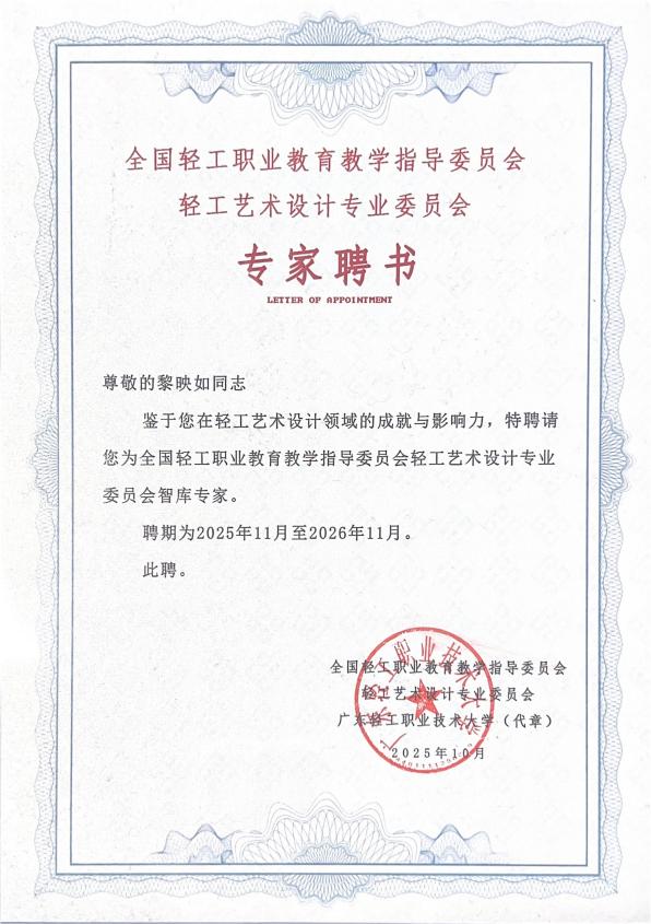 受聘“全國(guó)輕工藝術(shù)設(shè)計(jì)專委會(huì)智庫(kù)專家”
