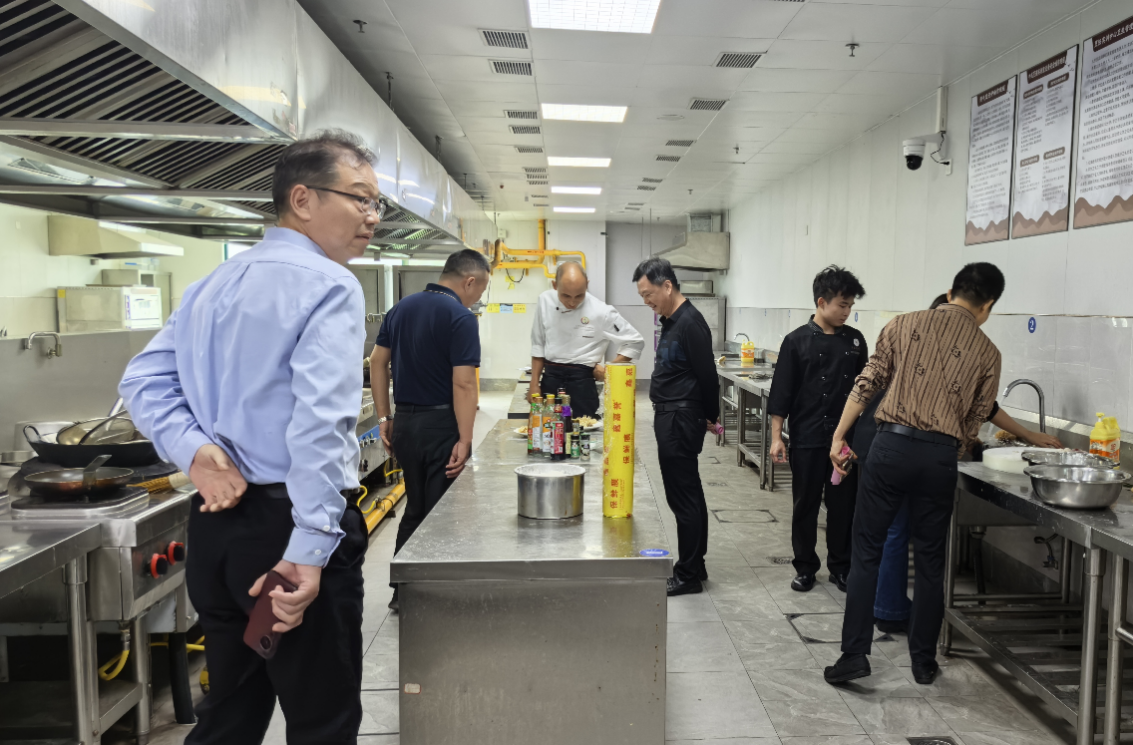 會(huì)后,孫文生大師與校領(lǐng)導(dǎo)一同前往我校烹飪實(shí)訓(xùn)室考察,孫大師細(xì)致查看了實(shí)訓(xùn)室的設(shè)施設(shè)備,觀摩了學(xué)生的實(shí)操訓(xùn)練,并對(duì)專業(yè)的教學(xué)環(huán)境與實(shí)訓(xùn)條件給予了高度評(píng)價(jià)。