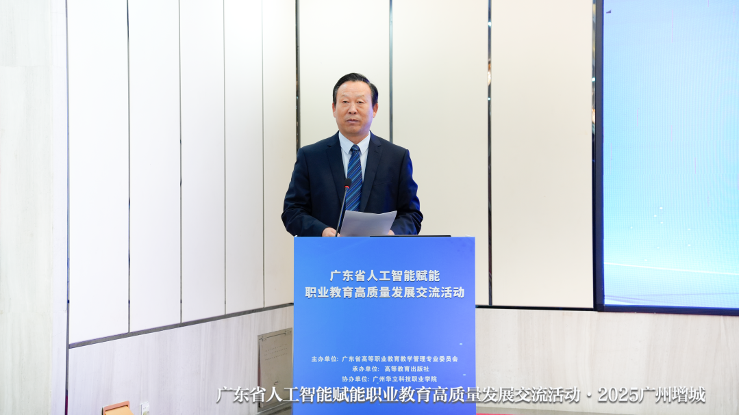 2025年11月1日,由廣東省高等職業(yè)教育教學(xué)管理專業(yè)委員會主辦、高等教育出版社承辦、廣州華立科技職業(yè)學(xué)院協(xié)辦的“人工智能賦能職業(yè)教育高質(zhì)量發(fā)展交流活動”在廣州增城賓館隆重舉行,在廣州華立科技職業(yè)學(xué)院廣州校區(qū)、云浮校區(qū)同步設(shè)立分會場?;顒訁R聚了來自全國的知名專家學(xué)者、教育界精英,本次交流會圍繞國家職業(yè)教育智慧教育平臺政策解讀、人工智能驅(qū)動職業(yè)教育協(xié)同創(chuàng)新發(fā)展、課程教材教學(xué)素質(zhì)一體化建設(shè)等主題,共同探討AI賦能職業(yè)教育的新方法、新路徑,為職業(yè)教育高質(zhì)量發(fā)展注入智慧動能。本次活動吸引了50多所職業(yè)院校的450余名高校專家、教師參會,大會由上下午兩場會議組成。上午會議由廣東省高等職業(yè)教育教學(xué)管理專業(yè)委員會副理事長、廣東酒店管理職業(yè)技術(shù)學(xué)院校長徐剛主持;下午會議由廣東省高等職業(yè)教育教學(xué)管理專業(yè)委員會副理事長、廣東亞視演藝職業(yè)學(xué)院校長丁孝智主持。