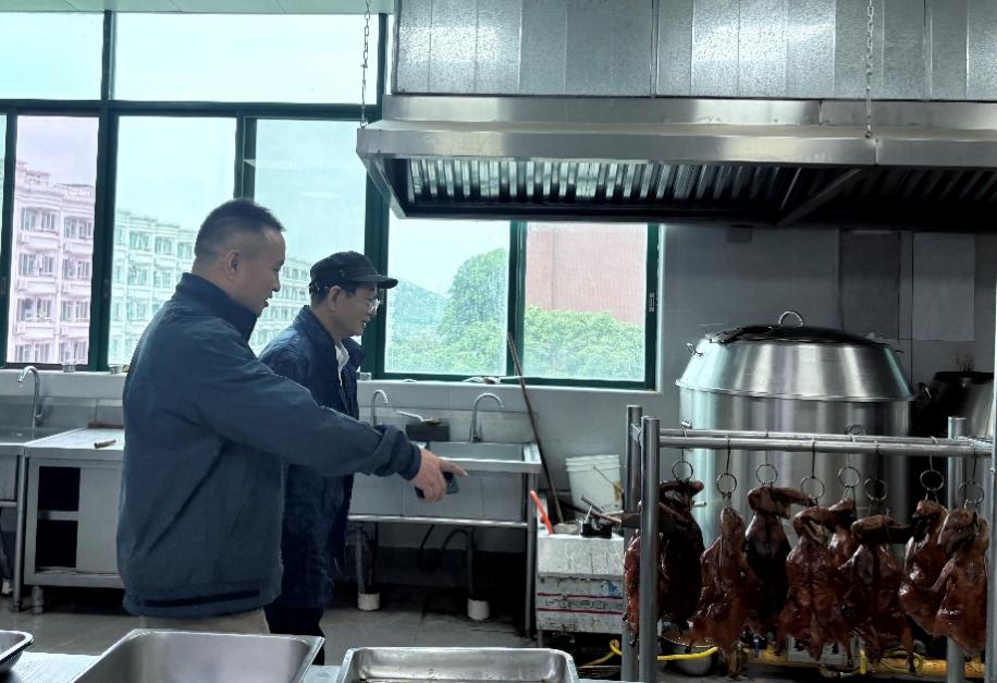 活動伊始,楊銘鐸教授在李春洪院長的陪同下,深入學(xué)校烹飪實訓(xùn)室開展實地考察。楊教授逐一查看中式烹調(diào)區(qū)、中西式面點實訓(xùn)區(qū)、營養(yǎng)配餐實驗室等功能區(qū)域,詳細(xì)詢問實訓(xùn)設(shè)備配置、課程實訓(xùn)開展情況及學(xué)生實操培養(yǎng)模式。針對實訓(xùn)室的功能布局、設(shè)備利用效率和人才培養(yǎng)等方面,楊教授現(xiàn)場給出針對性指導(dǎo)建議,為實訓(xùn)室進一步優(yōu)化升級、更好適配教學(xué)與行業(yè)人才需求提供了精準(zhǔn)方向。