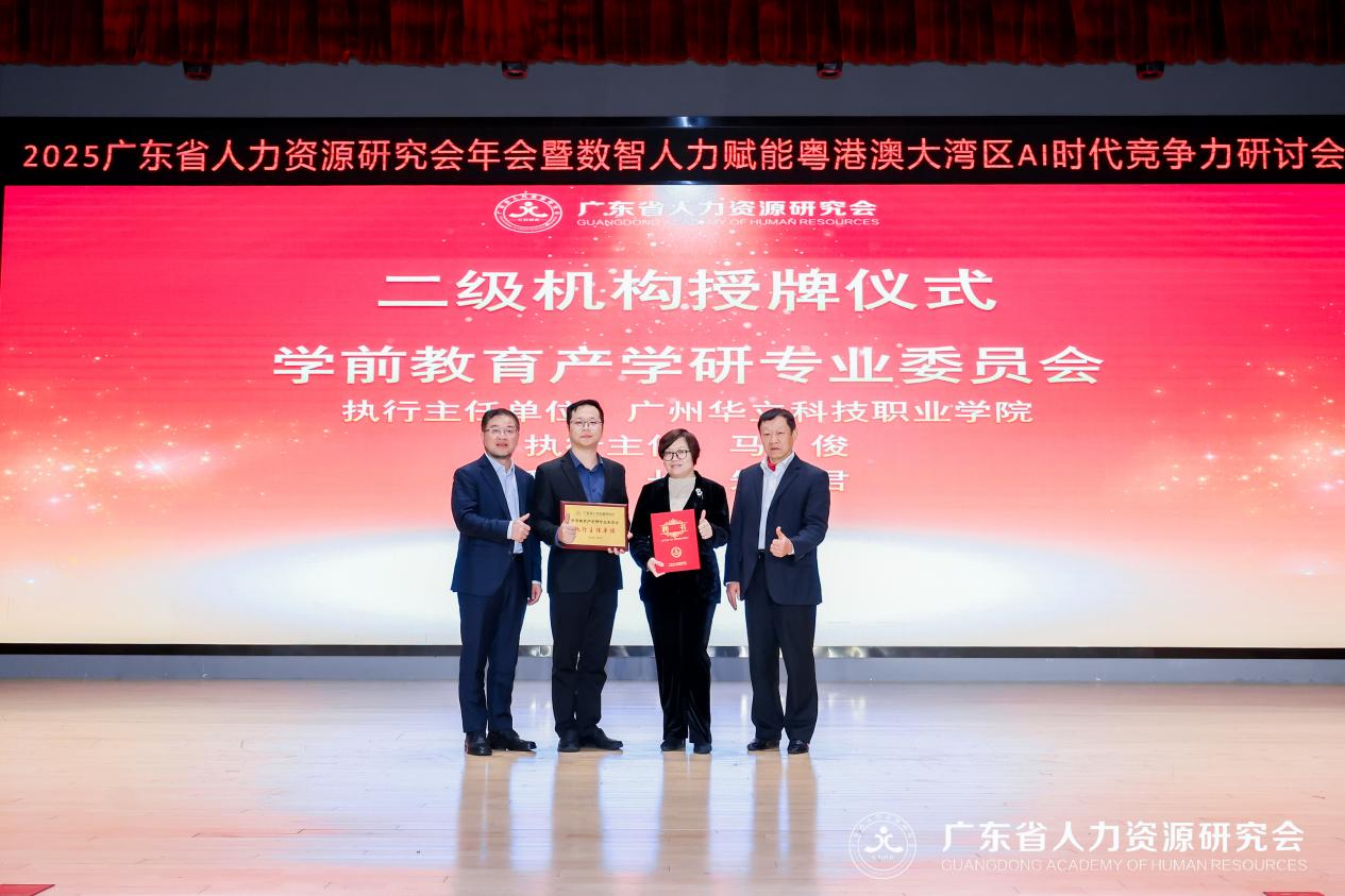 12月6日,2025年廣東省人力資源研究會(huì)年會(huì)暨數(shù)智人力賦能粵港澳大灣區(qū)AI時(shí)代競(jìng)爭(zhēng)力研討會(huì)在廣州天河召開,廣州華立科技職業(yè)學(xué)院常務(wù)副校長(zhǎng)馬俊、藝術(shù)與傳媒學(xué)院院長(zhǎng)朱君、培訓(xùn)學(xué)院副院長(zhǎng)林志受邀參會(huì),學(xué)校憑借在產(chǎn)教融合與人才培養(yǎng)領(lǐng)域的突出成果,榮獲2025年度人力資源“創(chuàng)新實(shí)踐獎(jiǎng)”。