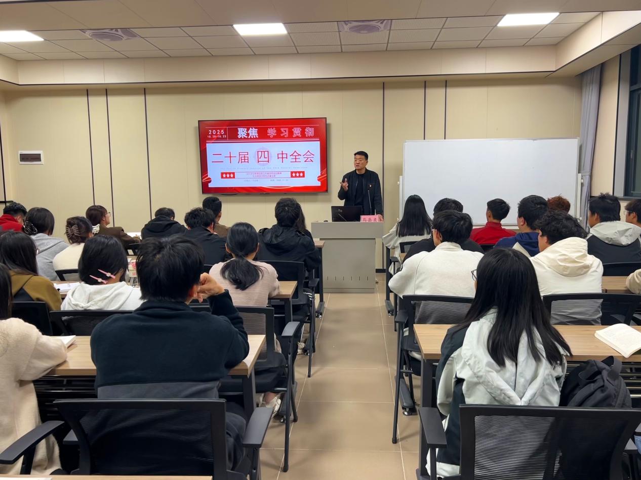 為深入學習貫徹黨的二十屆四中全會精神,引導全院師生將思想和行動統(tǒng)一到黨中央決策部署上來,11月26日晚,教育學院黨總支書記、院長馬岳良以“深入學習貫徹黨的二十屆四中全會精神,扎實推進學院高質(zhì)量發(fā)展”為主題,為學院入黨積極分子、學生骨干代表及全體教師開展專題宣講會,推動全會精神在校園落地生根。
