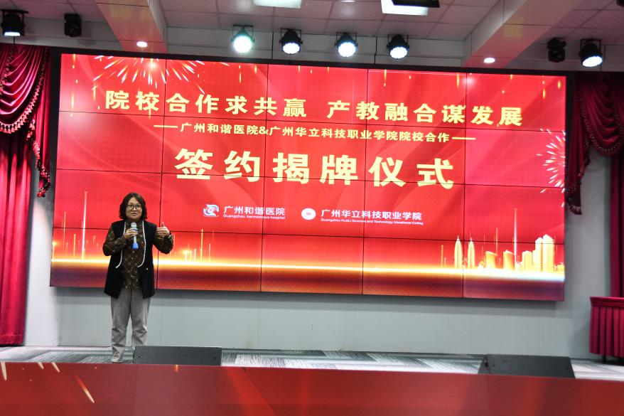 隨后,在雙方領(lǐng)導(dǎo)和嘉賓的共同見證下,廣州華立科技職業(yè)學(xué)院與廣州和諧醫(yī)院代表簽署了合作協(xié)議,并進(jìn)行了揭牌儀式。儀式現(xiàn)場氣氛熱烈,掌聲不斷。