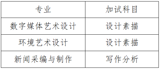 3.加試科目為設(shè)計(jì)素描的考生須自帶繪畫工具:鉛筆(2B、4B、6B、8B)或碳筆、橡皮擦、削筆刀、簽字筆(黑色字跡)。
