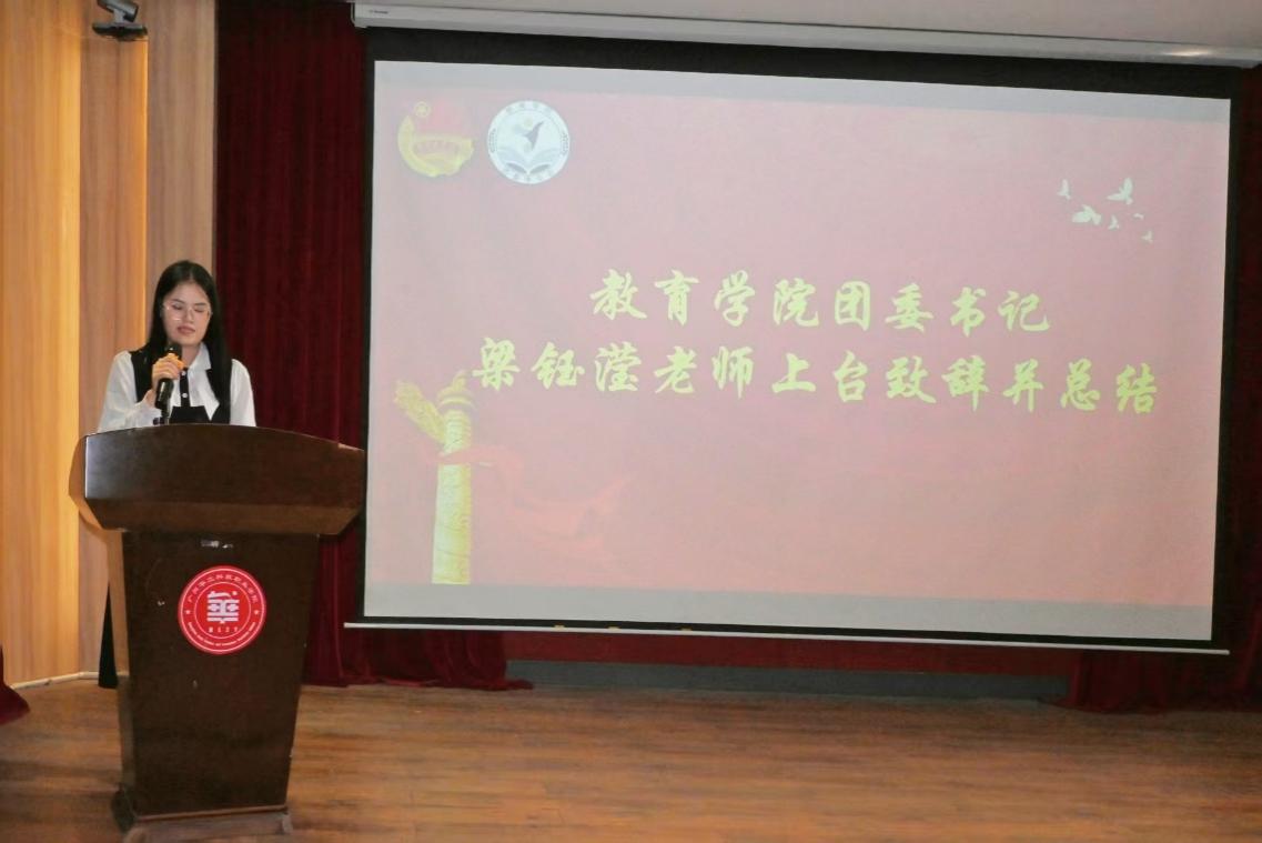 學院團委書記梁鈺瀅瀅老師在總結講話中,結合院長講話精神,向全體成員提出五點具體要求:深入領會講話內容,內化于心、外化于行;明確崗位職責,新老成員協(xié)同成長;注重工作規(guī)劃與落實,發(fā)揚釘釘子精神;加強溝通協(xié)作,提升工作效率;平衡學業(yè)與工作,實現全面發(fā)展。她希望大家以此次大會為起點,以實際行動為教育學院發(fā)展貢獻青春力量。