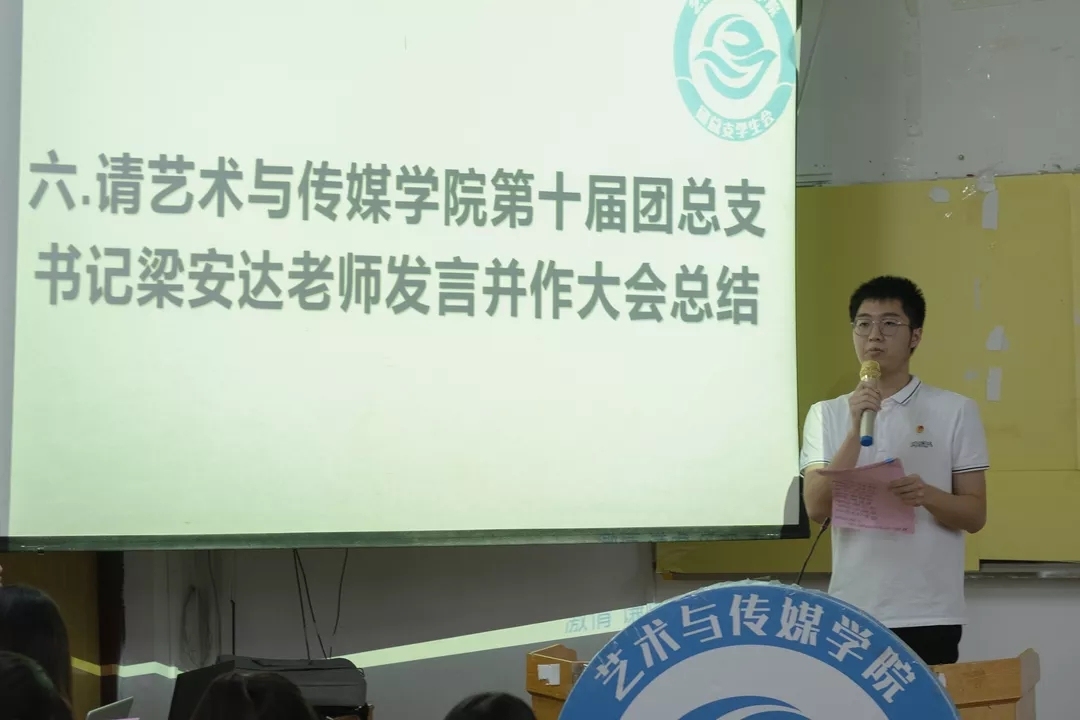 梁安達(dá)書記大會做總結(jié)發(fā)言:首先感謝校領(lǐng)導(dǎo),老師的大力關(guān)懷與教導(dǎo),感謝藝傳學(xué)院團(tuán)總支學(xué)生會第九屆全體學(xué)生干部的辛勤付出,為了今后團(tuán)總支學(xué)生會工作更好發(fā)展,在此對干部和新干事提出幾點(diǎn)要求: