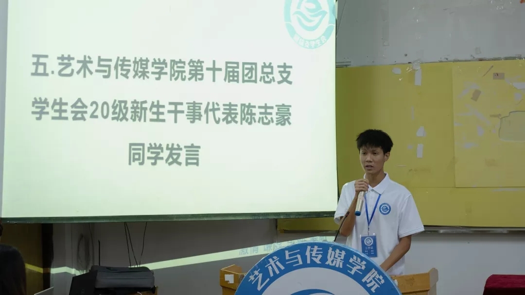藝術(shù)與傳媒學(xué)院團(tuán)總支學(xué)生會20級新生干事代表陳志豪同學(xué)代表發(fā)言,他提出一下幾點(diǎn)建議: