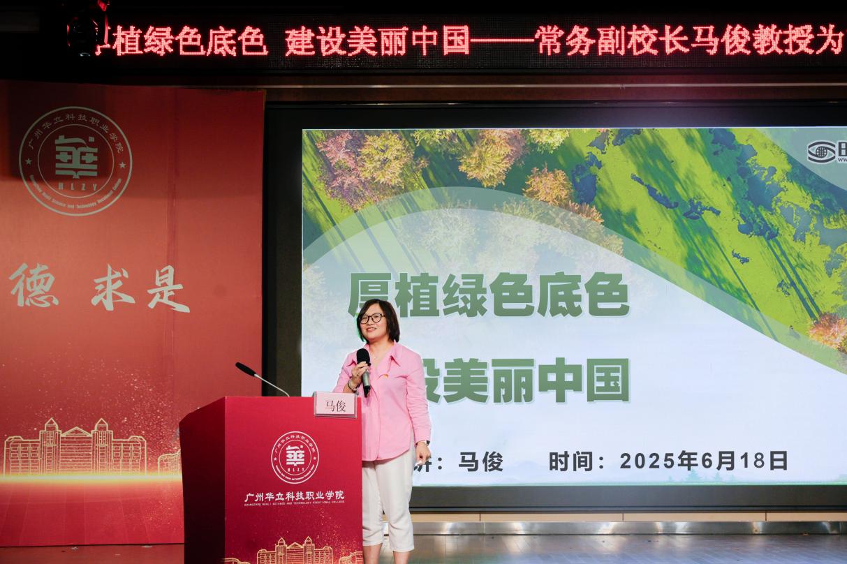 為深入貫徹落實(shí)習(xí)近平生態(tài)文明思想,2025年6月18日晚上6點(diǎn)在圖書館八樓禮堂,廣州華立科技職業(yè)學(xué)院常務(wù)副校長馬俊教授以“厚植綠色底色 建設(shè)美麗中國”為主題,為藝術(shù)與傳媒學(xué)院師生帶來了一堂別開生面、意義深遠(yuǎn)的思政課。參加此次思政課的有藝傳學(xué)院院長朱君、全體輔導(dǎo)員、專業(yè)老師以及23級400左右學(xué)生,藝傳學(xué)院黨總支書記陳改梅主持。