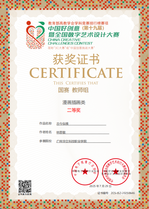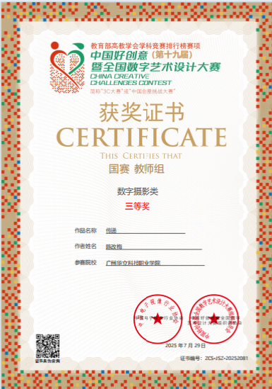 一直以來,學校領(lǐng)導(dǎo)高度重視教師隊伍的專業(yè)發(fā)展和教學水平提升,積極為教師們搭建學術(shù)交流、競賽鍛煉的平臺,定期組織培訓(xùn)與研討,鼓勵教師參與各類專業(yè)競賽與學術(shù)研究,營造了濃厚的學術(shù)氛圍和良好的創(chuàng)新環(huán)境。此次喜獲佳績,不僅是對教師個人能力的肯定,更是學校持續(xù)推進教學改革與產(chǎn)教融合發(fā)展的生動體現(xiàn)。未來,學校將持續(xù)深化數(shù)字藝術(shù)領(lǐng)域的教學改革與科研探索,搭建更廣闊的師生發(fā)展平臺,激勵更多教育工作者與學子在藝術(shù)與科技的融合之路上勇于突破、再創(chuàng)佳績,助力學校高質(zhì)量發(fā)展。