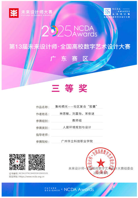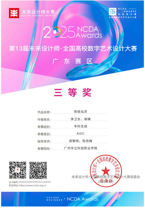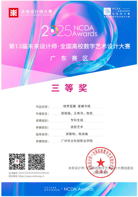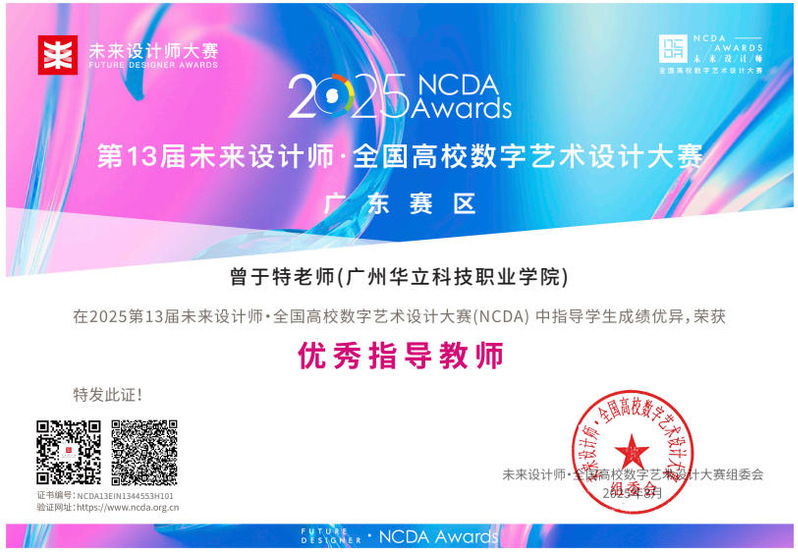 在2025年舉辦的第13屆未來設計師·全國高校數字藝術設計大賽(NCDA)中,藝術與傳媒學院師生憑借其卓越的創(chuàng)意和精湛的技術,榮獲多項大獎。未來設計師·全國高校數字藝術設計大賽(NCDA)是入選《全國普通高校大學生競賽排行榜》,近20家省教育廳認定,“學習強國”學習平臺支持,對接聯合國國際賽的全國性大學生競賽。是高校教育教學改革和創(chuàng)新人才培養(yǎng)的重要競賽項目之一,具有極高的知名度與影響力。本次大賽是由全國高校數字藝術設計專業(yè)委員會主辦,旨在挖掘和培養(yǎng)數字藝術設計領域的未來之星,大賽已連續(xù)舉辦13屆,為藝術設計領域的高水平知名賽事,是我院師生積極參與的重要專業(yè)競賽之一。