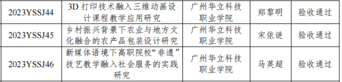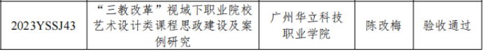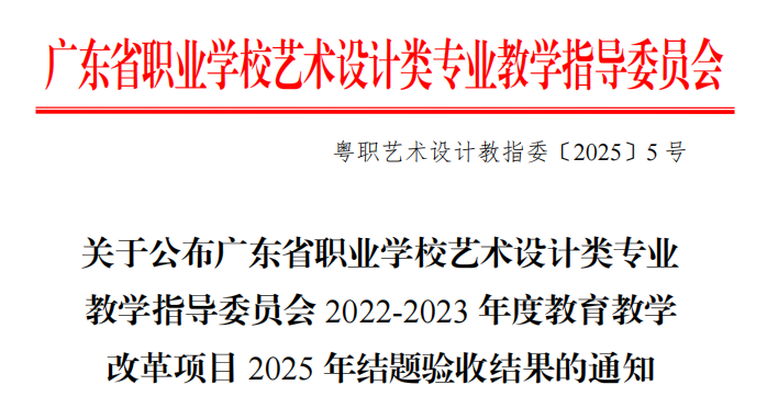 近日,依據(jù)廣東省職業(yè)學(xué)校藝術(shù)設(shè)計(jì)類專業(yè)教學(xué)指導(dǎo)委員會發(fā)布的《廣東省職業(yè)學(xué)校藝術(shù)設(shè)計(jì)類專業(yè)教學(xué)指導(dǎo)委員會2022-2023年度教育教學(xué)改革項(xiàng)目2025年結(jié)題驗(yàn)收結(jié)果的通知》(粵職藝術(shù)設(shè)計(jì)教指委〔2025〕5號),我校傳來喜訊:由馬俊教授主持的《非遺藝術(shù)價(jià)值發(fā)現(xiàn)與服務(wù)大眾相關(guān)問題研究——以廣州欖雕為例》(項(xiàng)目編號:2022YSSJ65)、吳韻怡副教授主持的《數(shù)字化技術(shù)對高職藝術(shù)類專業(yè)學(xué)生在線學(xué)習(xí)效果的影響》(項(xiàng)目編號:2022YSSJ16)、黎映如副教授主持的《基于1+X證書制度的藝術(shù)設(shè)計(jì)專業(yè)“崗課賽證”融通的實(shí)踐探索》(項(xiàng)目編號:2022YSSJ72)、陳改梅副教授主持的《“三教改革”視域下職業(yè)院校藝術(shù)設(shè)計(jì)類課程思政建設(shè)及案例研究》(項(xiàng)目編號:2023YSSJ43)、鄭黎明副教授主持的《3D打印技術(shù)融入三維動畫設(shè)計(jì)課程教學(xué)應(yīng)用研究》(項(xiàng)目編號:2023YSSJ44)、宋依謎副教授主持的《鄉(xiāng)村振興背景下農(nóng)業(yè)與地方文化融合的農(nóng)產(chǎn)品包裝設(shè)計(jì)研究》(項(xiàng)目編號:2023YSSJ45)、馬英超副教授主持的《新媒體語境下高職院校“非遺”技藝教學(xué)融入社會服務(wù)的實(shí)踐研究》(項(xiàng)目編號:2023YSSJ46)這7項(xiàng)教育教學(xué)改革項(xiàng)目均圓滿通過結(jié)題驗(yàn)收。廣州華立科技職業(yè)學(xué)院在此次教改浪潮中斬獲豐碩成果,在數(shù)字化教學(xué)、非遺傳承、產(chǎn)教融合等多個(gè)關(guān)鍵領(lǐng)域交出了一份令人眼前一亮的創(chuàng)新答卷,為藝術(shù)設(shè)計(jì)類職業(yè)教育的高質(zhì)量發(fā)展注入了源源不斷的強(qiáng)勁動力。