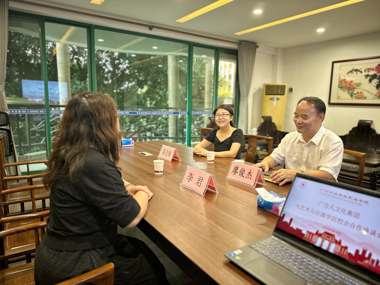 2025年9月16日,廣告人文化集團(tuán)(天津)有限公司總裁辦公室主任李君一行到訪廣州華立科技職業(yè)學(xué)院,與校方就深化校企合作、推動(dòng)產(chǎn)教融合展開(kāi)座談交流。廣州華立科技職業(yè)學(xué)院校長(zhǎng)廖俊杰、藝術(shù)與傳媒學(xué)院黨總支書(shū)記陳改梅等出席本次會(huì)議。