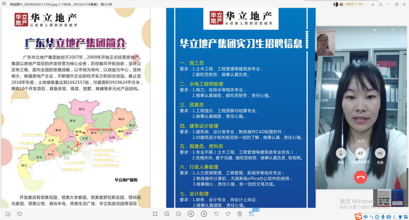廣州華立科技職業(yè)學院城建學院于2020年5月成功先后舉辦4場企業(yè)宣講會。城建學院校外主任劉燕老師成功邀請了廣州華立地產(chǎn)集團有限公司、廣州市吉華勘測股份有限公司、佳邦建設集團有限公司、中咨工程建設監(jiān)理有限公司等四家企業(yè)負責人在釘釘、微信上,為我校城建學院在校生做企業(yè)宣講。宣講會由劉燕老師主持,城建學院2018級學生踴躍參加了本月舉行的企業(yè)宣講會。