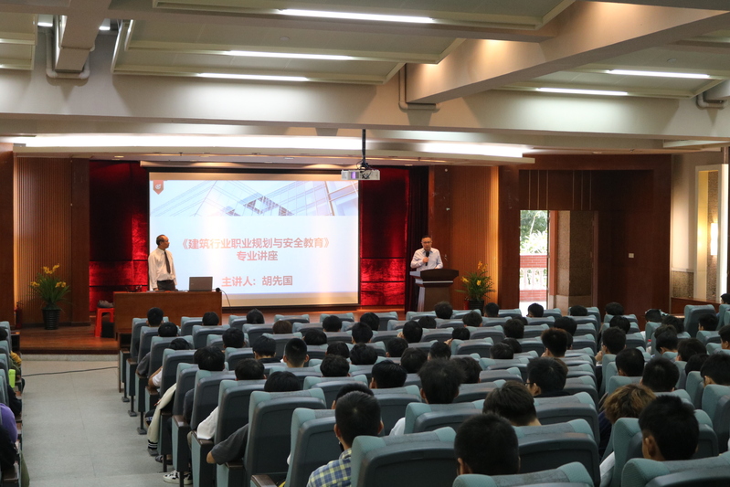 講座上,戴院長致歡迎詞及講述召開此次講座的意義。胡經(jīng)理圍繞著建筑行業(yè)職業(yè)規(guī)劃與安全教育,從自身的職業(yè)經(jīng)歷,分享了很多實際工作中的經(jīng)驗及教訓(xùn),講座內(nèi)容生動有趣,結(jié)合現(xiàn)今工作的實際,還引用許多工作上的人物事跡案例,吸引學(xué)生高度關(guān)注,互動時場面一度熱鬧非凡。