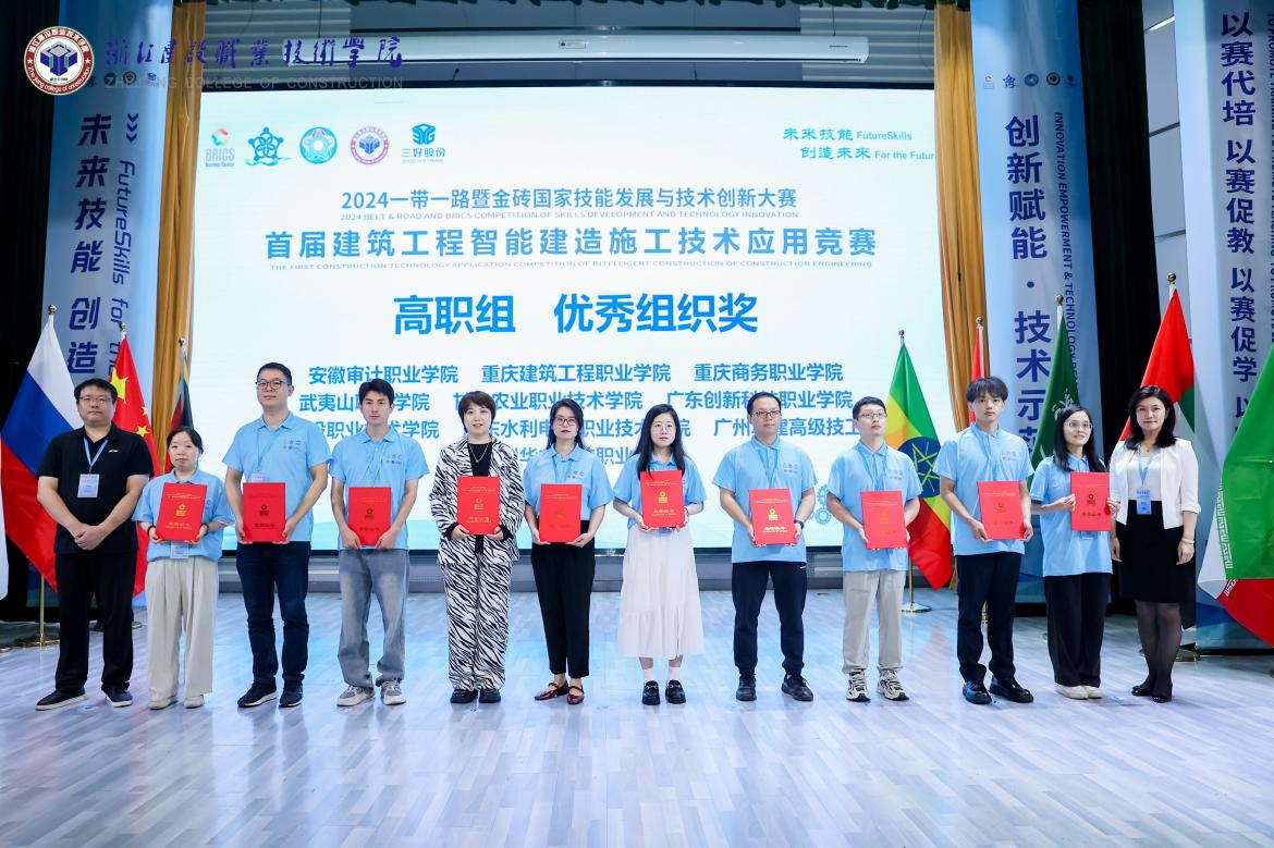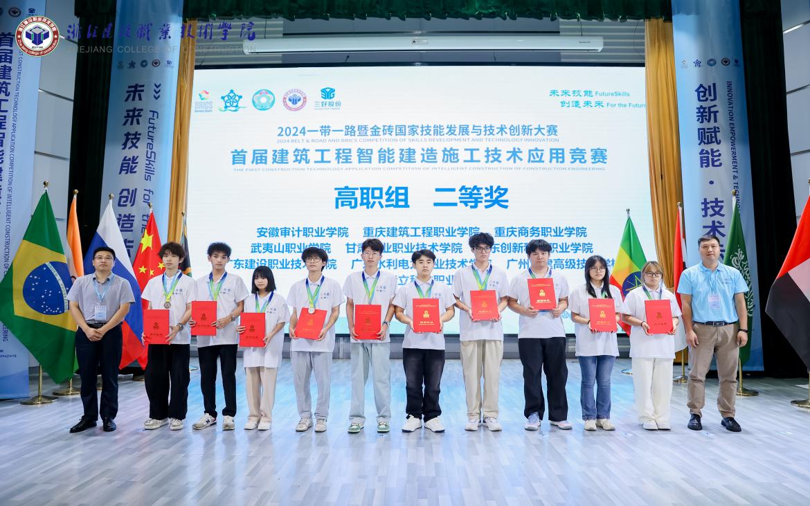 9月26日至28日,由教育部中外人文交流中心、一帶一路暨金磚國家技能發(fā)展國際聯(lián)盟和中國發(fā)明協(xié)會等單位聯(lián)合主辦,西安三好軟件技術股份有限公司、浙江建設職業(yè)技術學院等單位聯(lián)合承辦的2024一帶一路暨金磚國家技能發(fā)展與技術創(chuàng)新大賽首屆建筑工程智能建造施工技術應用賽項(BRICS-ST-027)全國總決賽,在浙江杭州舉行。本屆大賽自4月起,通過校園選拔賽、全國區(qū)域選拔賽,共有來自全國600余所高校、7萬余名師生參與,最終來自全國31個?。ㄗ灾螀^(qū)、直轄市)和孟加拉國、馬來西亞等國際留學生共計382所院校、415支隊伍、1500余名師生入圍總決賽。經過激烈角逐,我校城建學院學生徐文升、黃梓煥表現出色,在首屆建筑工程智能建造施工技術應用賽項決賽(??平M)中榮獲全國二等獎,指導教師喬亮、甘英浩榮獲優(yōu)秀指導教師稱號,同時,我校憑借前期出色的組織工作,榮獲組委會頒發(fā)的優(yōu)秀組織獎。