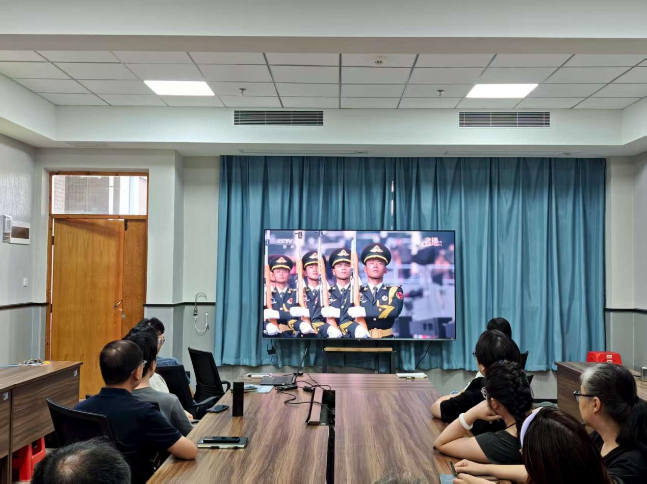 (圖二學(xué)院教師在會(huì)議室觀看閱兵)