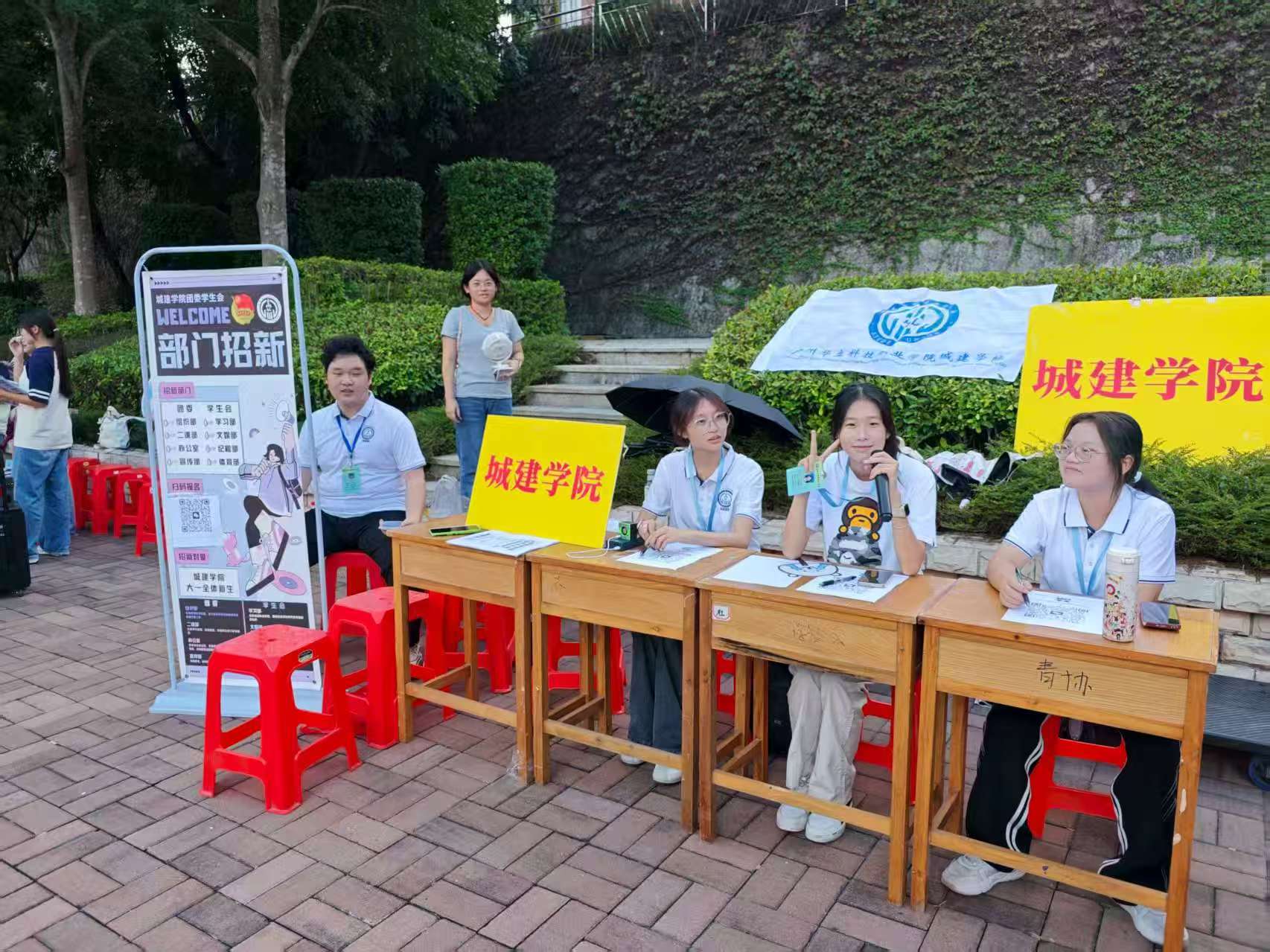 2025 年 9 月 15 日,城建學(xué)院團委學(xué)生會在圖書館樓下小廣場正式舉行招新活動。學(xué)院黨總支書記、副院長吳毅強,團委書記楊威豪及全體輔導(dǎo)員老師來到招新現(xiàn)場,了解招新組織情況,并與工作人員、咨詢學(xué)生親切交流,詳細(xì)詢問團學(xué)各部門招新需求、報名人數(shù)及學(xué)生意向偏好,為招新活動的順利推進提供指導(dǎo)。