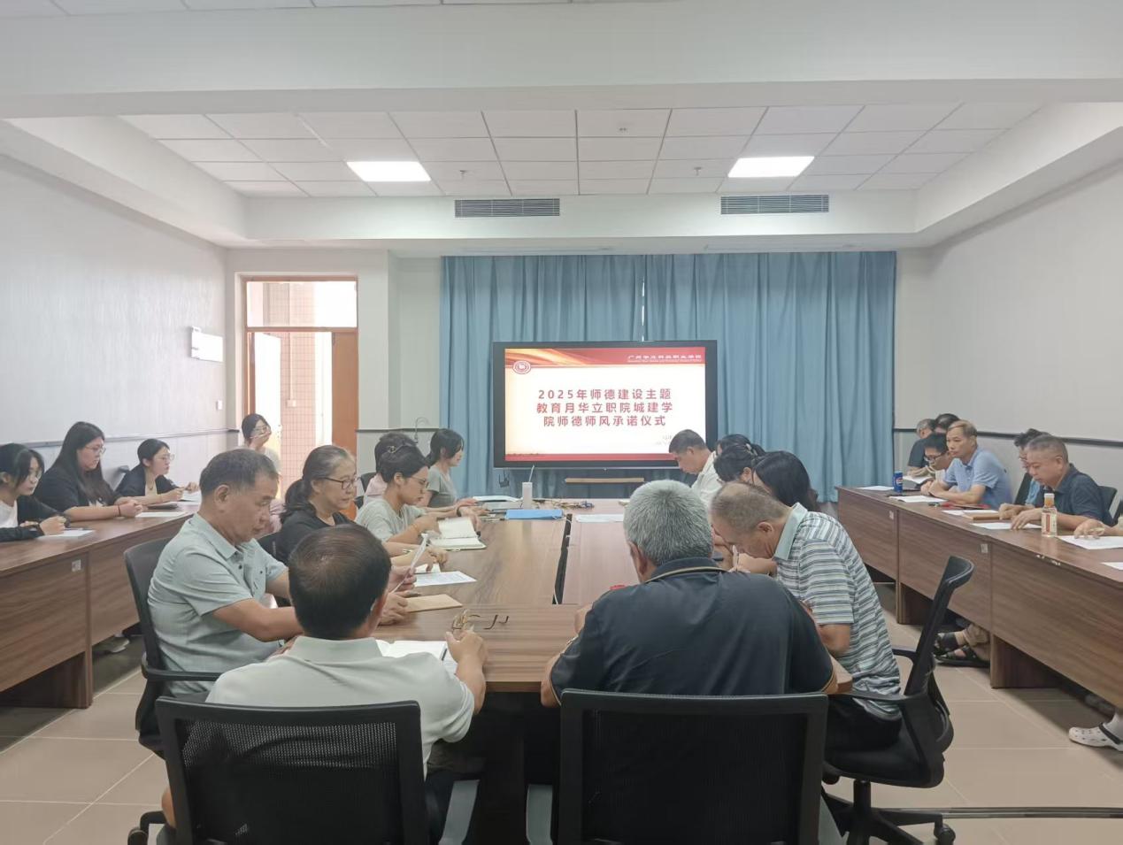 為深入貫徹落實(shí)新時(shí)代教師隊(duì)伍建設(shè)和學(xué)校師德師風(fēng)教育月活動(dòng)要求,推進(jìn)師德師風(fēng)建設(shè),強(qiáng)化教師育人責(zé)任意識(shí),2025年9月10日下午,城建學(xué)院組織全院教師開(kāi)展師德師風(fēng)主題教育會(huì)議。學(xué)院全體教師參會(huì),院長(zhǎng)徐耀鑒教授主持會(huì)議,會(huì)議核心環(huán)節(jié)為全院教師簽署《教師師德師風(fēng)承諾書(shū)》,以莊重儀式筑牢教師師德防線(xiàn),為學(xué)院教育教學(xué)質(zhì)量提升奠定堅(jiān)實(shí)基礎(chǔ)。