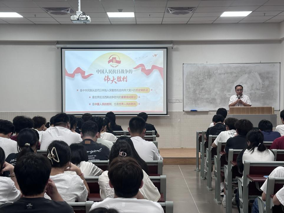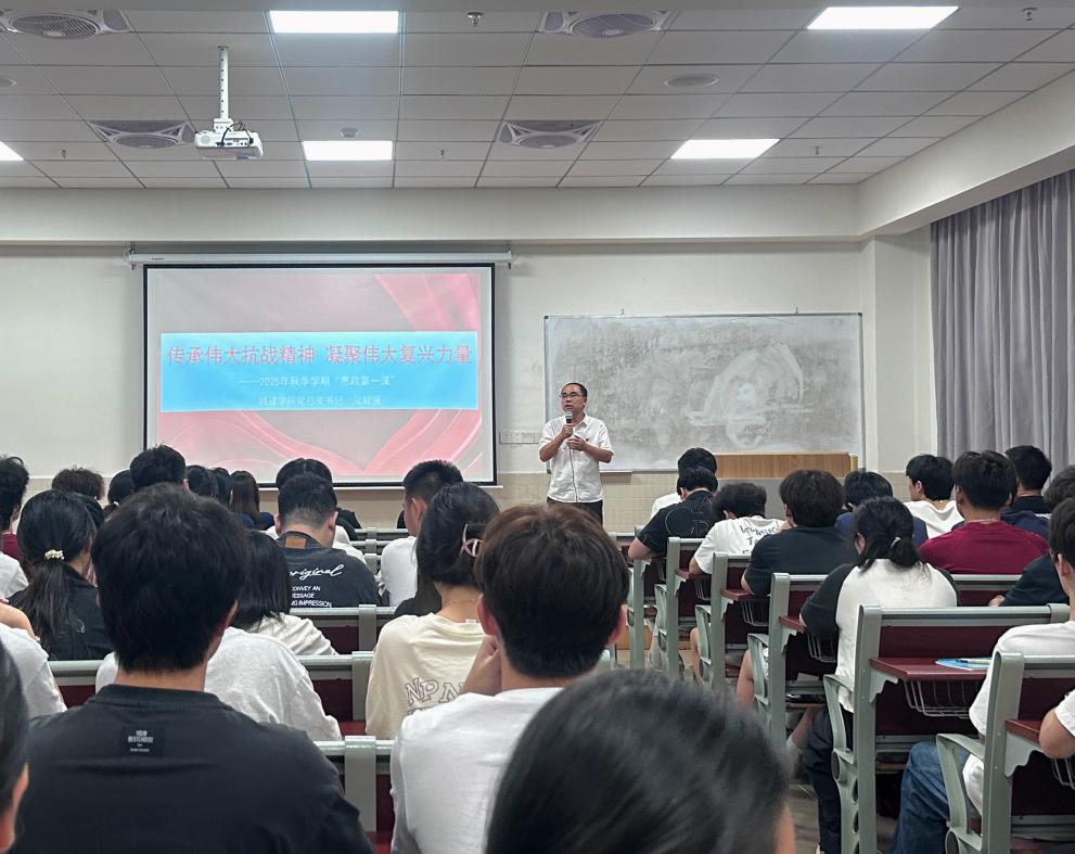 2025年10月14日,城建學(xué)院黨總支書(shū)記吳毅強(qiáng)在第二教學(xué)樓408教室,為24級(jí)、25級(jí)各專(zhuān)業(yè)學(xué)生講授以“傳承偉大抗戰(zhàn)精神 凝聚偉大復(fù)興力量”為主題的“思政第一課”,引導(dǎo)青年學(xué)子從抗戰(zhàn)歷史中汲取精神力量,錨定民族復(fù)興使命。