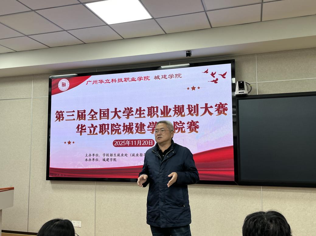 大賽伊始,城建學(xué)院院長徐耀鑒教授發(fā)表致辭。他指出,職業(yè)規(guī)劃是學(xué)生成長成才的“導(dǎo)航圖”,更是學(xué)院人才培養(yǎng)工作的重要抓手。希望同學(xué)們通過本次大賽找準(zhǔn)職業(yè)定位、明確發(fā)展方向,將個(gè)人理想與行業(yè)發(fā)展、國家需求緊密結(jié)合。同時(shí),他鼓勵(lì)全體參賽選手以賽促學(xué)、以賽促練,在交流比拼中提升職業(yè)素養(yǎng),為未來職場(chǎng)發(fā)展筑牢根基,并預(yù)祝大賽取得圓滿成功。