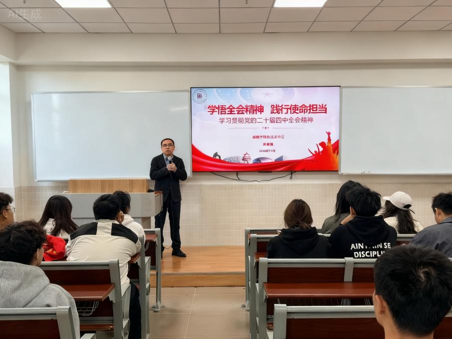 2025年11月28日,城建學院黨總支書記吳毅強面向學院師生開展黨的二十屆四中全會精神專題宣講,引導青年學子將個人理想融入國家發(fā)展大局,在中國式現(xiàn)代化建設中踐行青春擔當。