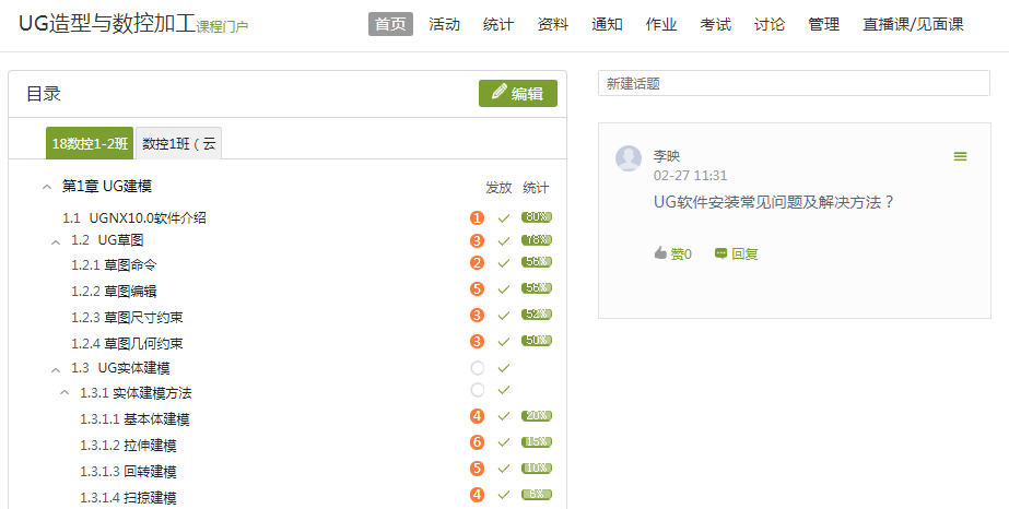 李映老師采用超星平臺(tái)及直播方式上《UG造型與數(shù)控加工》課程