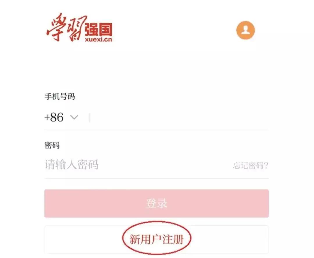 ①打開“學(xué)習(xí)強(qiáng)國”,點擊“新用戶注冊”