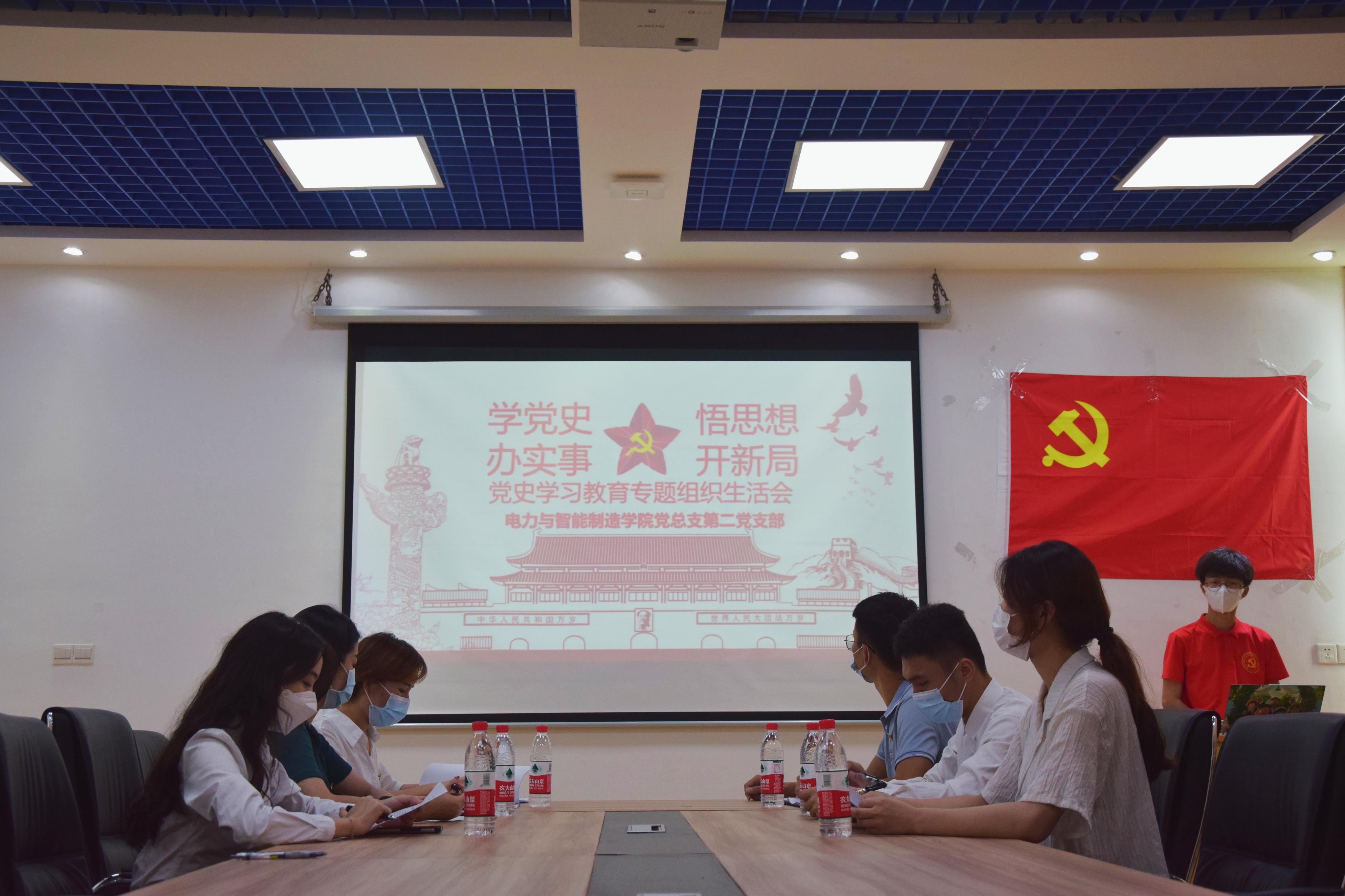 2021年9月10日上午9點,電力與智能制造學院黨總支第二黨支部在科技樓五樓會議室召開了黨史學習教育專題組織生活會。