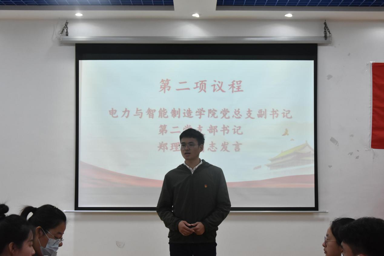 電力學(xué)院黨總支第二黨支部書記鄭理廣發(fā)表講話,他首先對當(dāng)下的時事進(jìn)行簡述,希望參加通表大會的發(fā)展對象能夠建立一個關(guān)注時事的習(xí)慣,最后祝愿27位發(fā)展對象可以如期被吸收為中共預(yù)備黨員。
