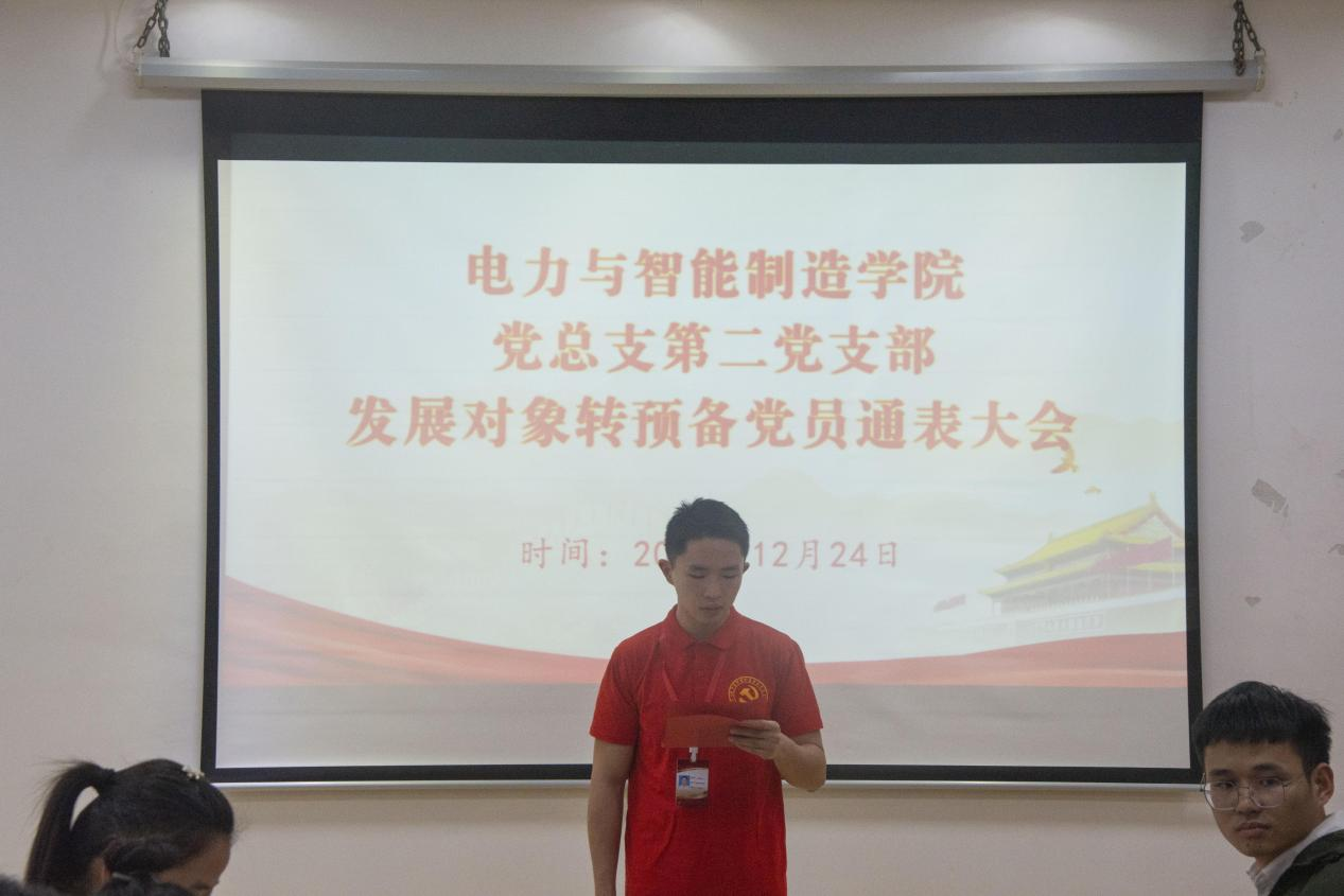 2021年12月31日,電力與智能制造學(xué)院黨總支第二黨支部在科技樓五樓召開了2021年下半年第二批發(fā)展預(yù)備黨員通表大會;大會討論并投票表決吸收關(guān)于林業(yè)源、黃詩慧等27位同學(xué)為中共預(yù)備黨員。