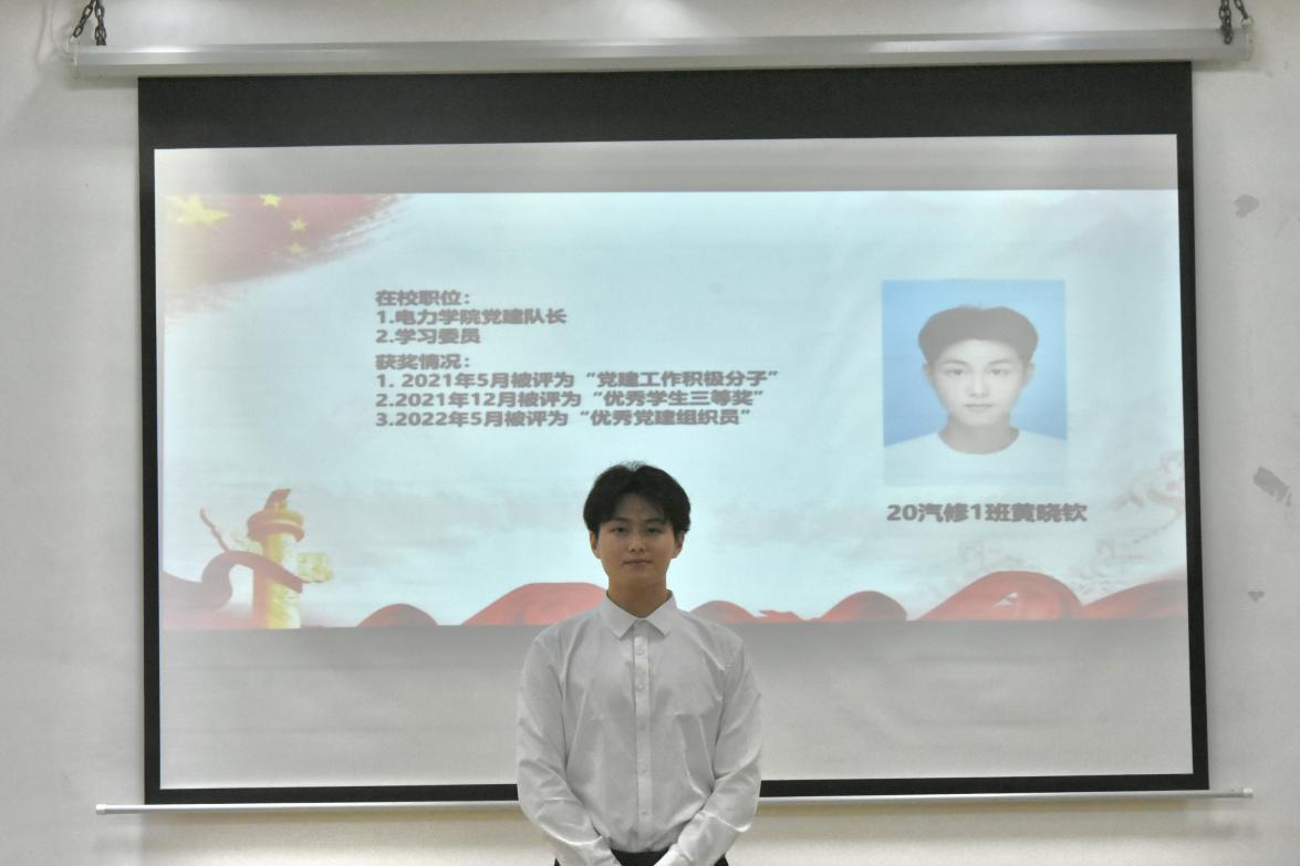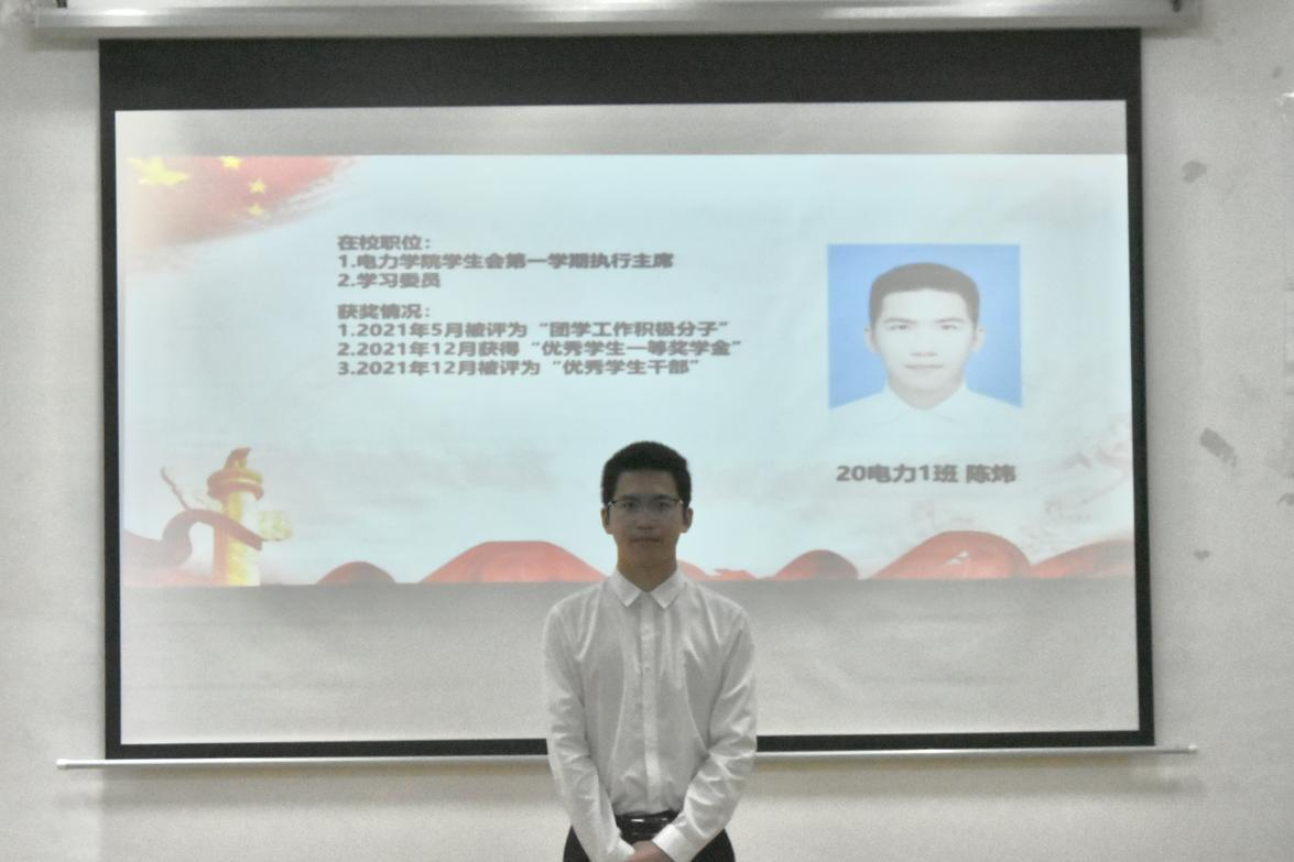 電力與智能制造學(xué)院黨總支第一黨支部副書記劉杰同志發(fā)表講話,他首先對當(dāng)下的時事發(fā)表了看法,表揚了這次發(fā)展對象他們能夠在工作中,能刻苦鉆研業(yè)務(wù),同時努力學(xué)習(xí)政治理論和業(yè)務(wù)知識,認(rèn)真履行黨員義務(wù),堅持黨性鍛煉。