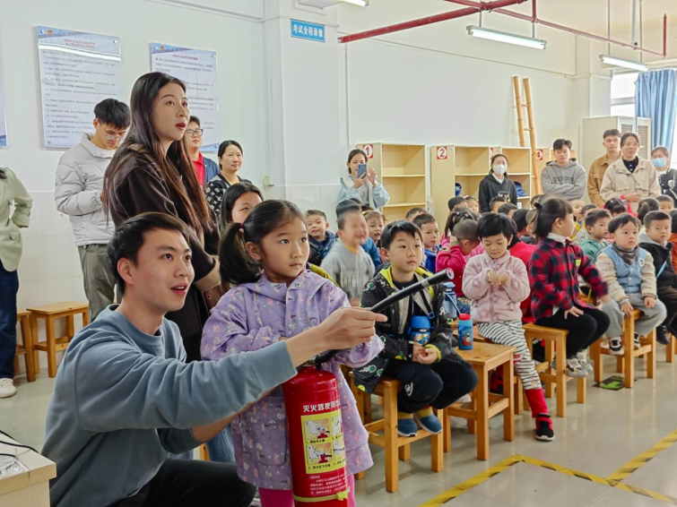 在綜合樓405教室中,林祥智老師為小朋友們?cè)敿?xì)介紹了滅火器的種類(lèi)、作用、使用方法及使用場(chǎng)景,并為小朋友們演示了發(fā)生起火時(shí)該怎么去處理滅火方式,讓小朋友們進(jìn)一步了解滅火器的原理和使用方法。告訴小朋友一定不能玩火,認(rèn)識(shí)安全逃跑通道標(biāo)識(shí)等安全知識(shí),并讓小朋友們知道一旦發(fā)生了火災(zāi),要撥打119報(bào)警電話。